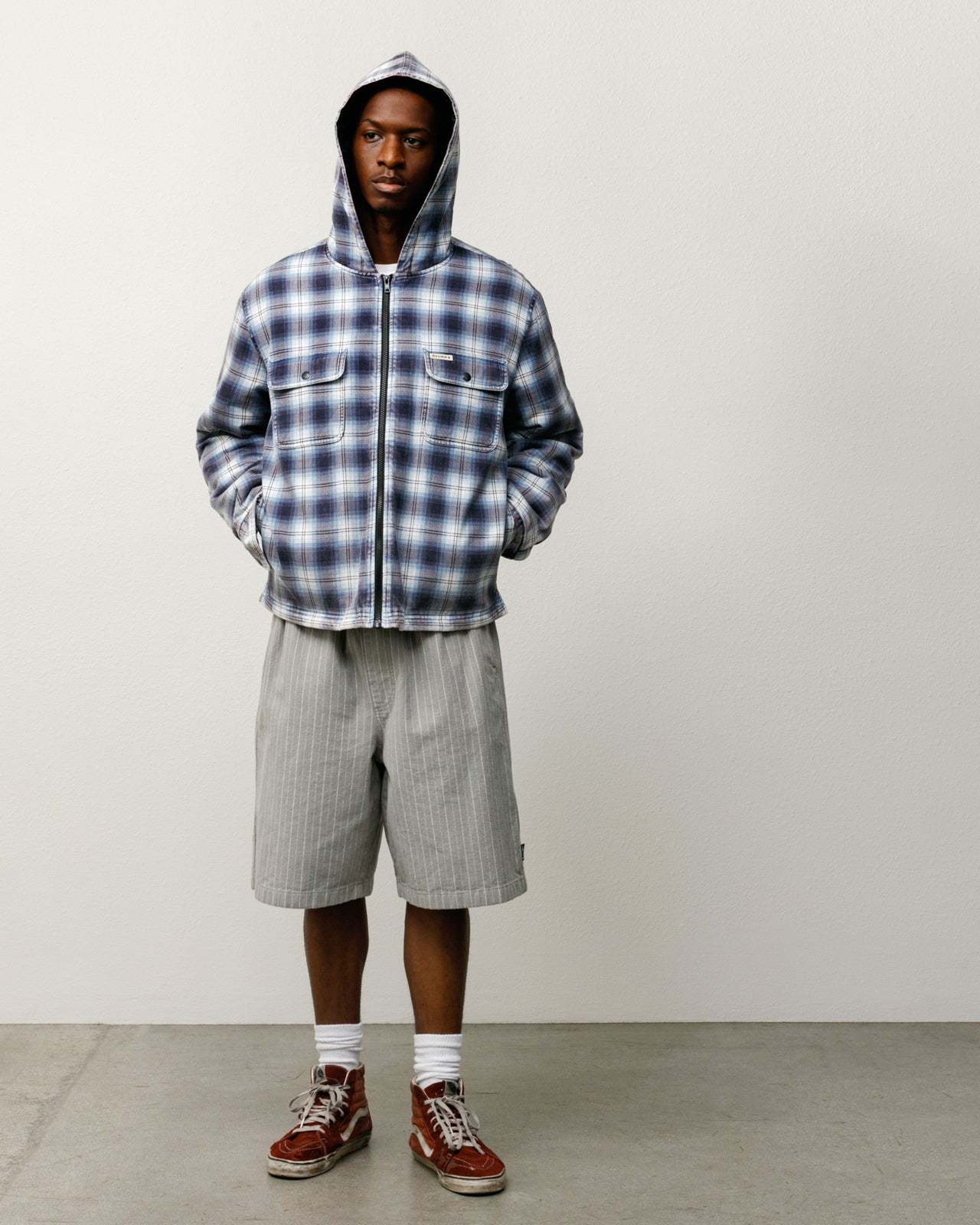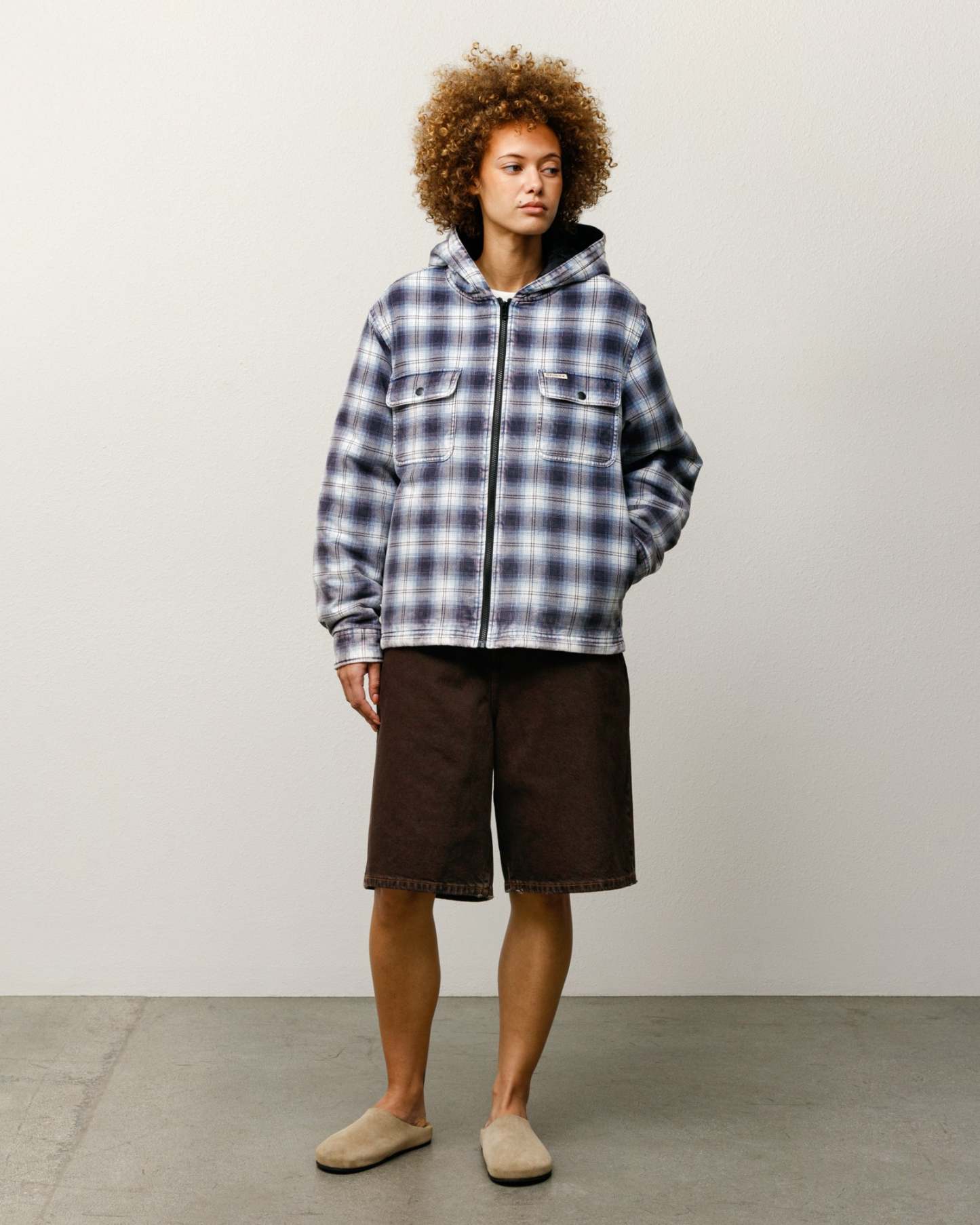 ZIP HOODED PLAID SHIRT
