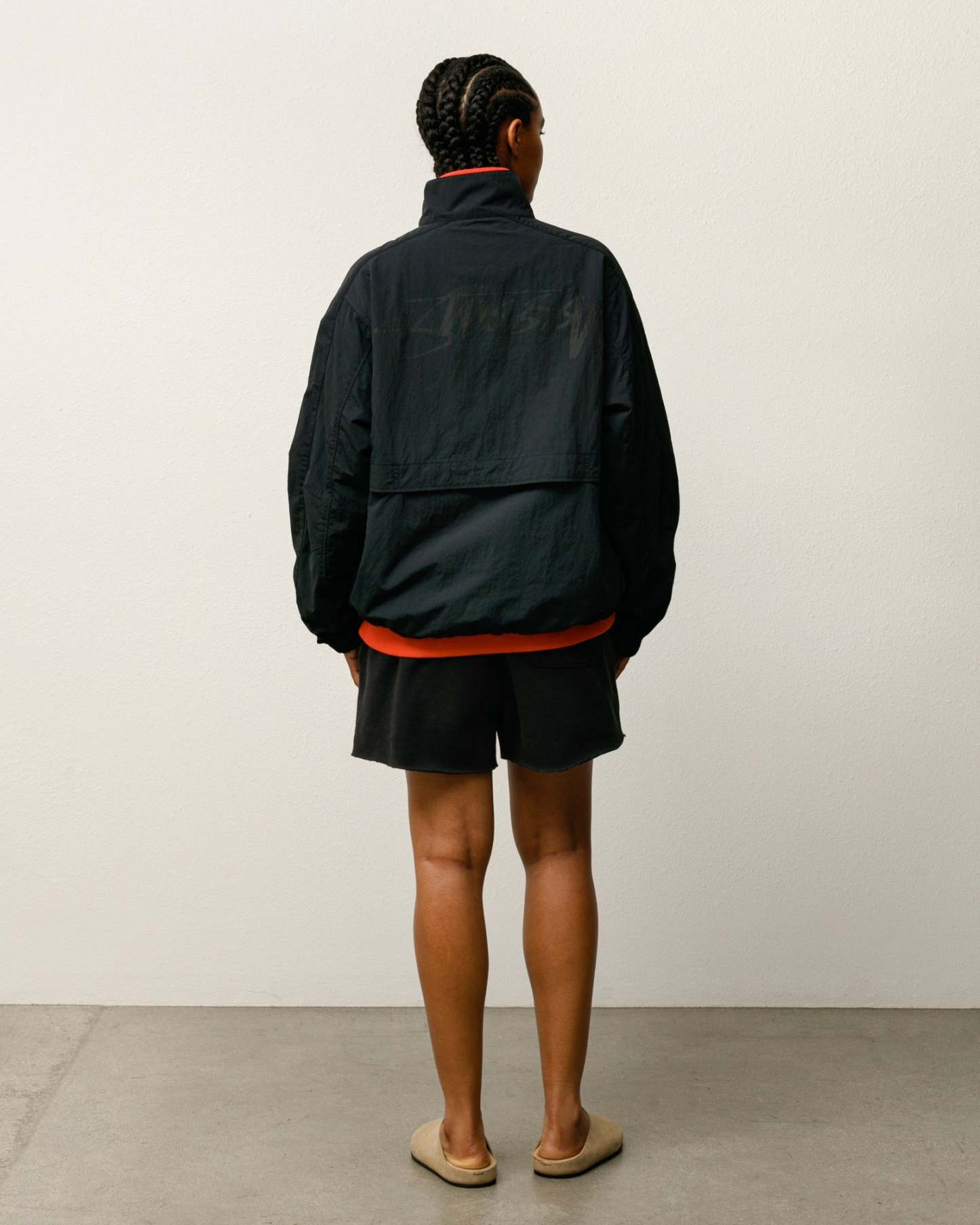 - Stüssy smooth stock logo print across back