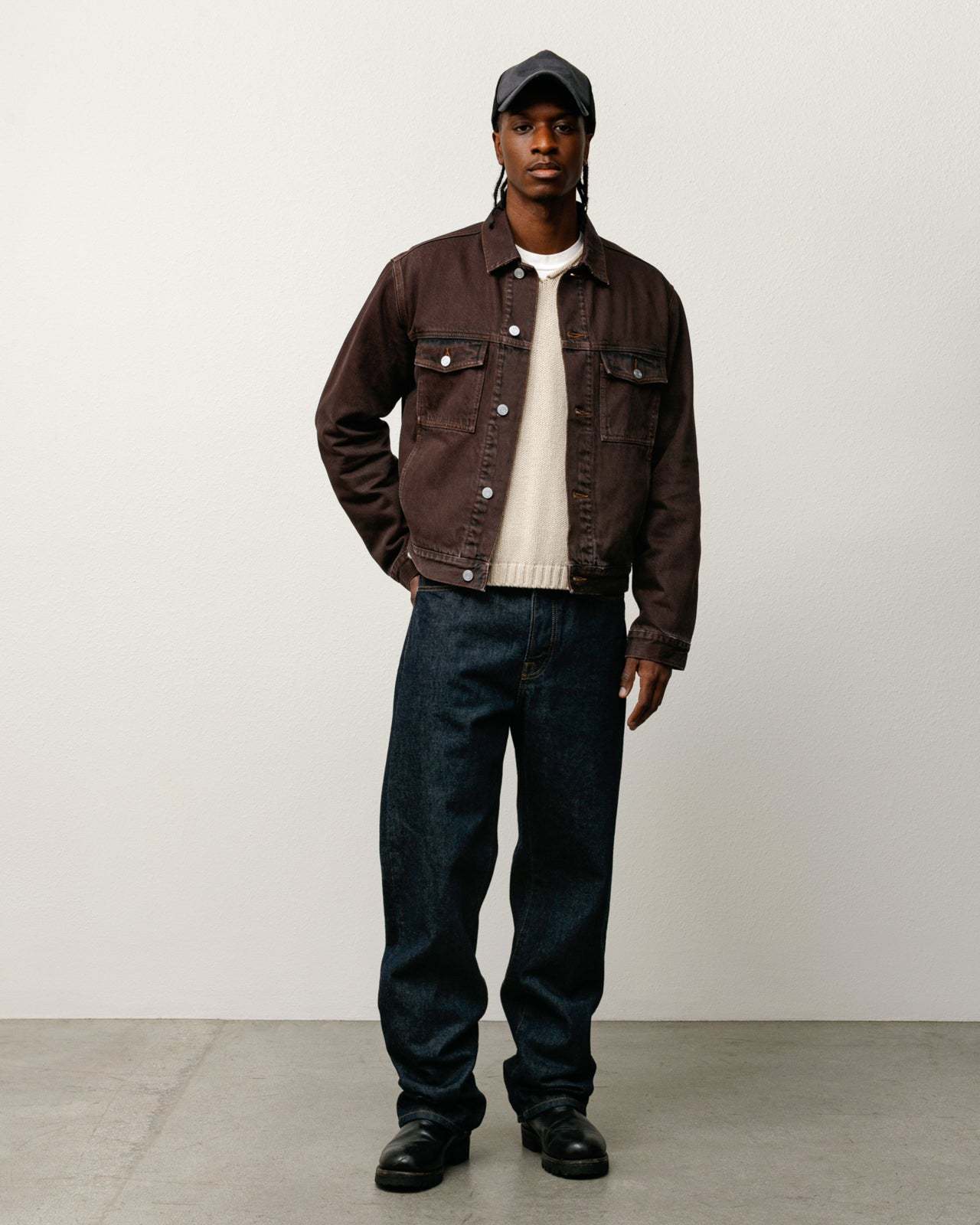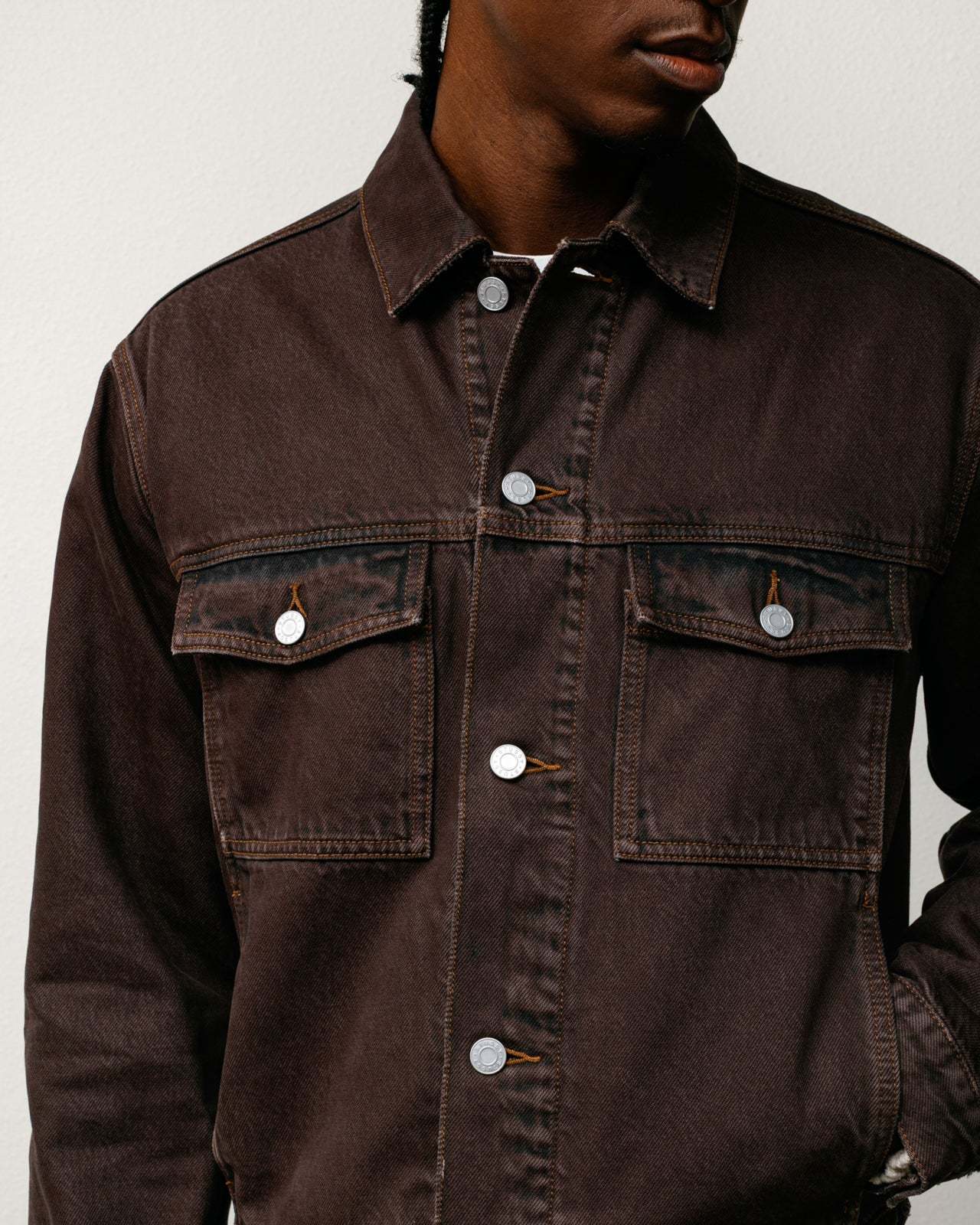 - Relaxed, boxy fit trucker jacket