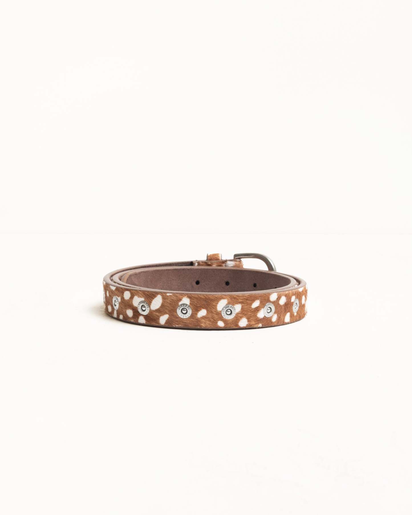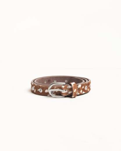 - Hairy-textured leather belt with metal buckle