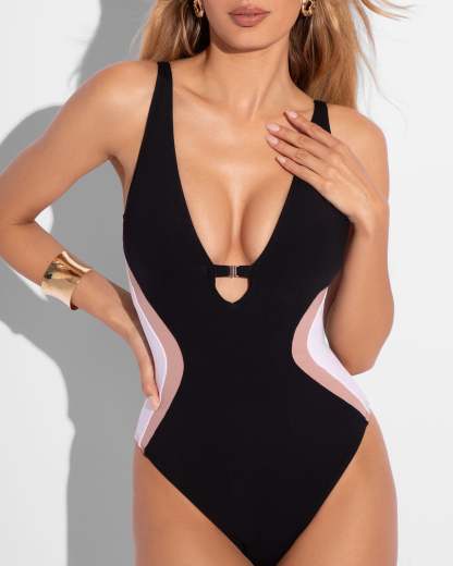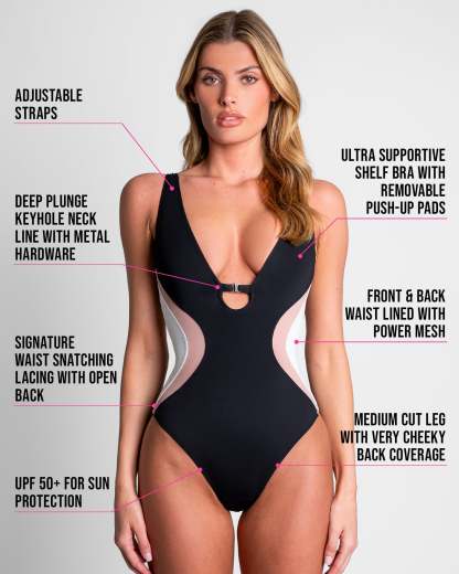 Brazilian Plungey Keyhole - Contour Black/Rose/White