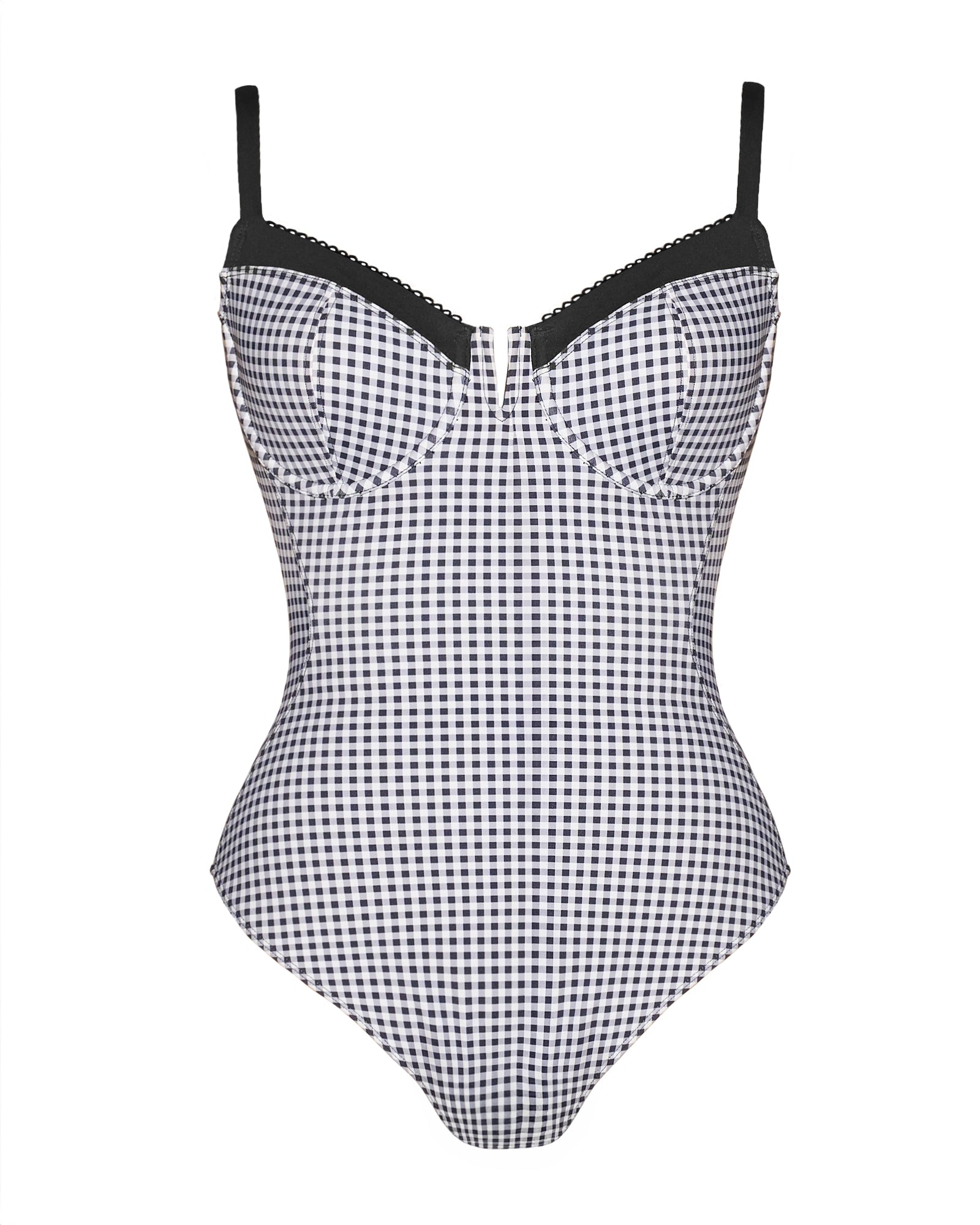 - V-wire neckline detail.