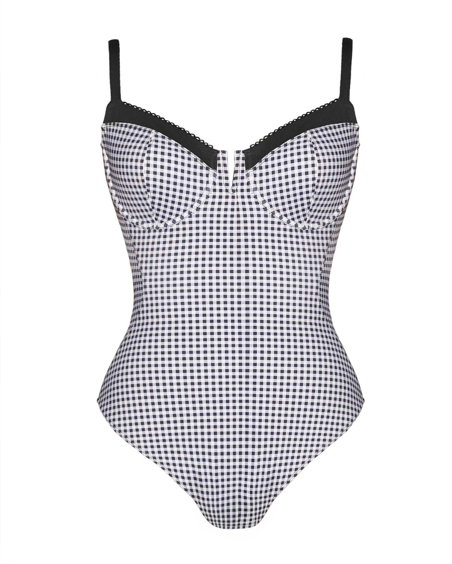 - Underwire support with thin removable bust pads and adjustable back straps.