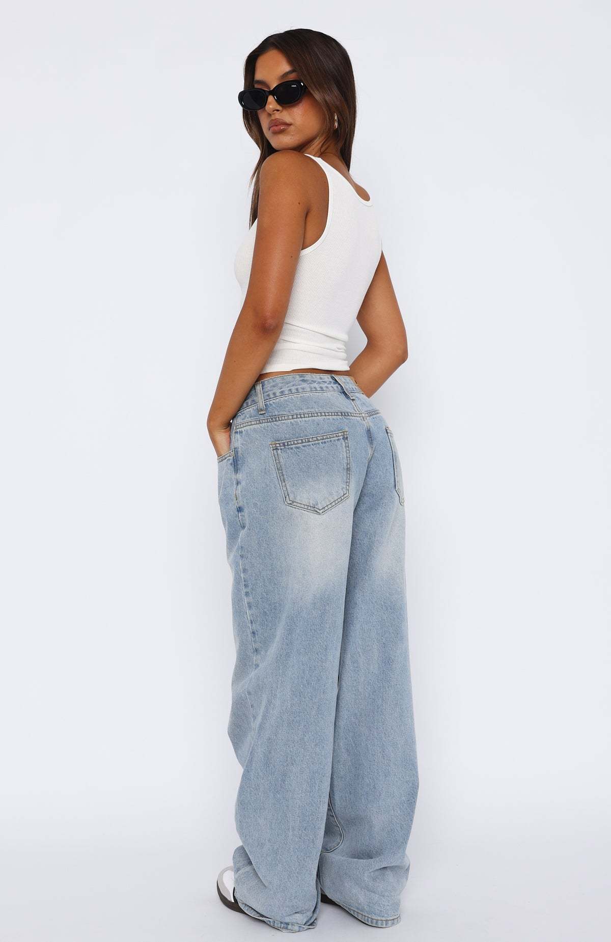 Bring The Style Low Rise Wide Leg Jeans Light Blue Wash
