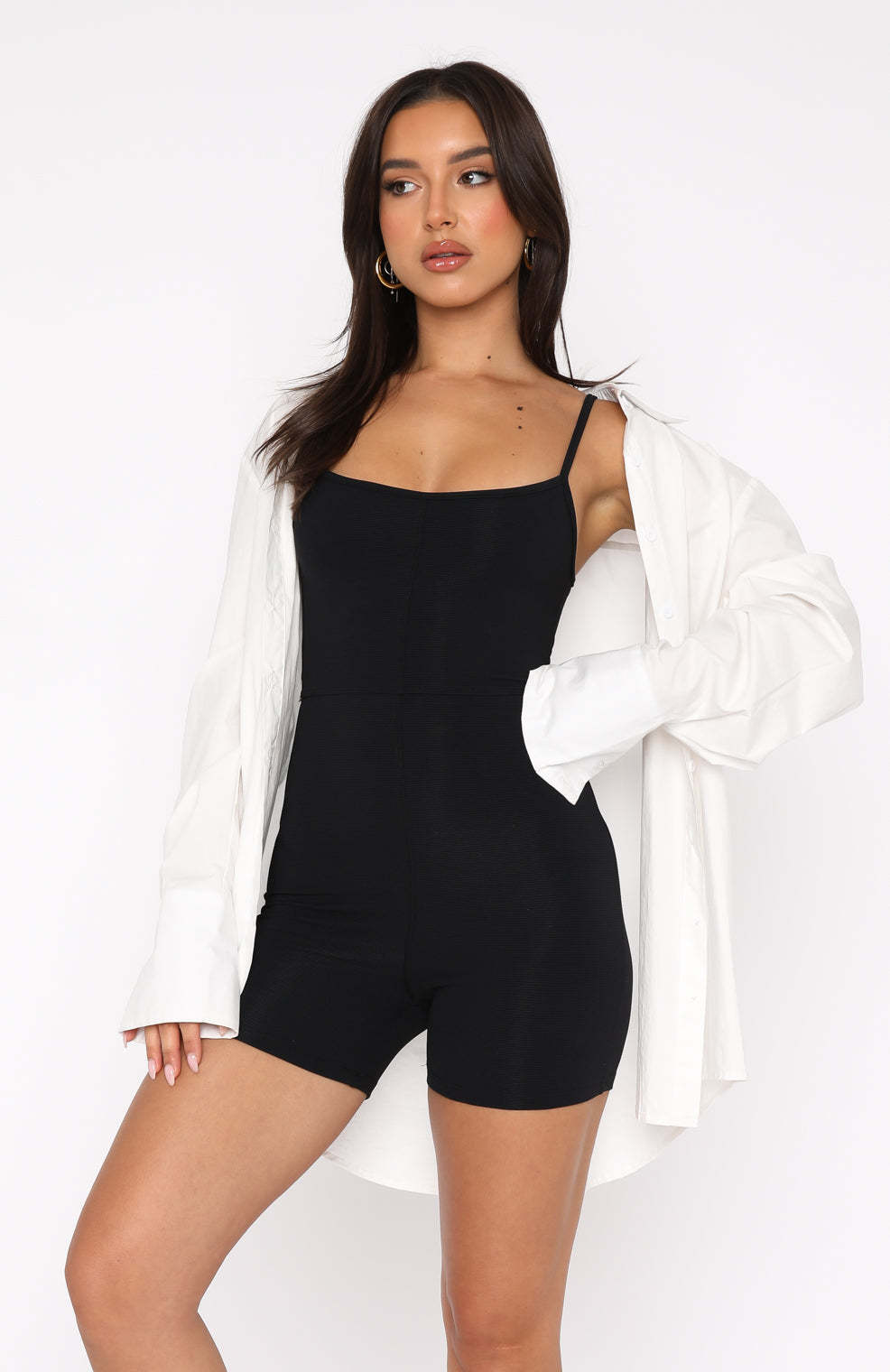 Your weekend outfit is sorted in the Clearly Into You Playsuit in Black. Featuring adjustable straps, scoop neckline, mini short length and thick, ribbed fabric. Complete the look with sneakers and a cute long sleeve top for a total dream girl look.