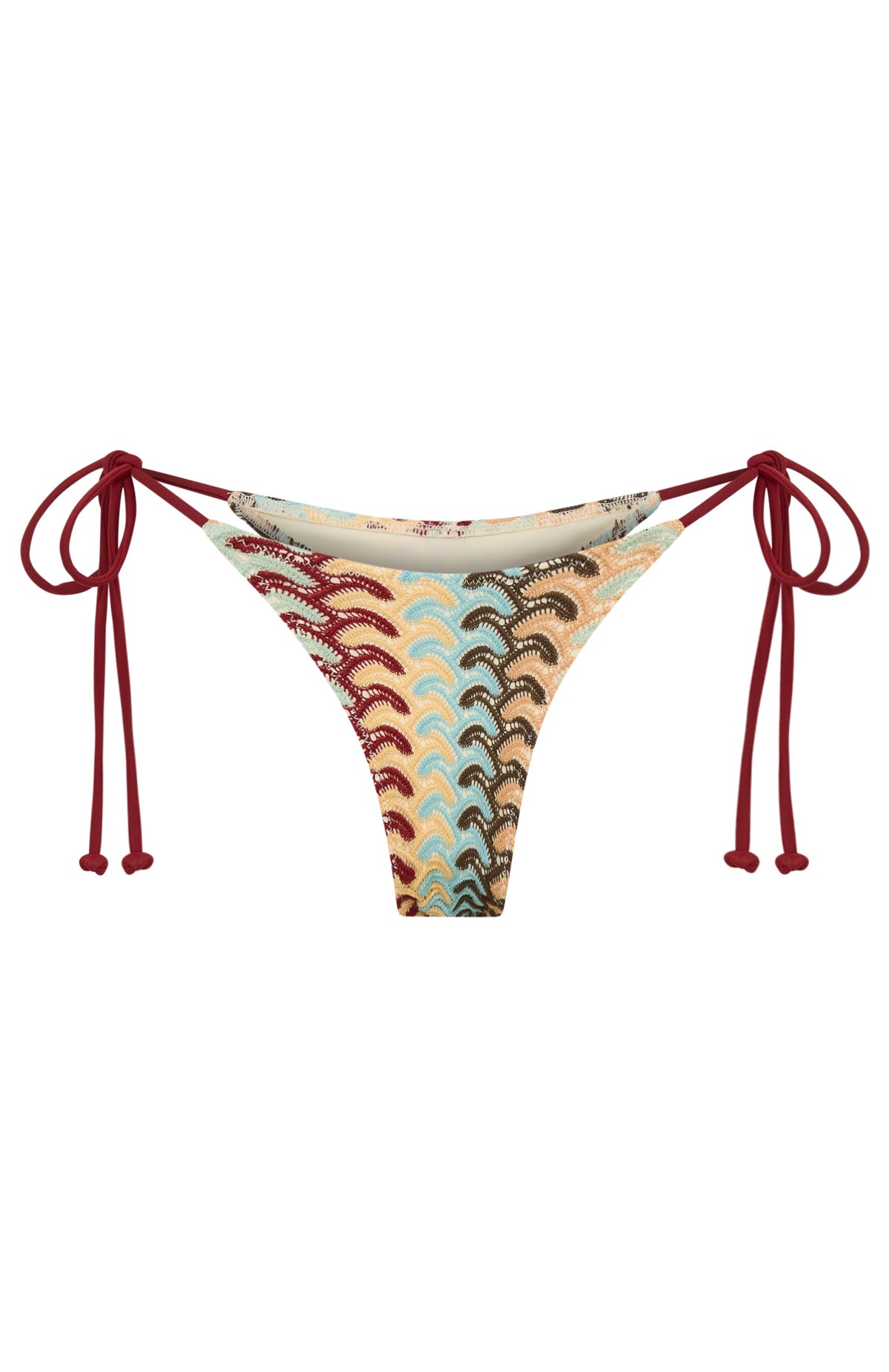 Beach days look best in the Clio Bottoms in Autumn. Featuring self‑tie hip straps, our cheekiest thong coverage, and a crochet overlay with full lining. They pair perfectly with the matching bikini top for effortless sun‑soaked style.
