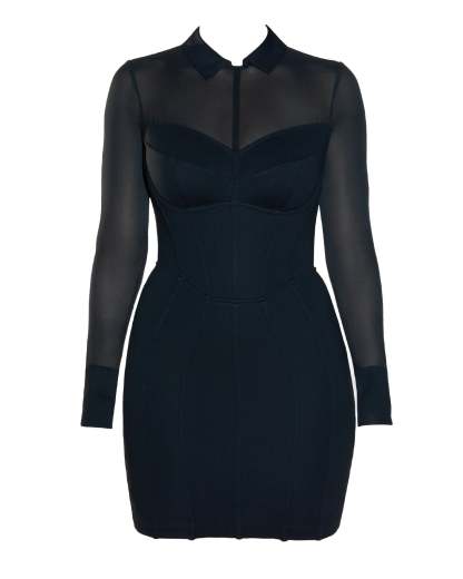 Collar Mesh Mini Dress - Black