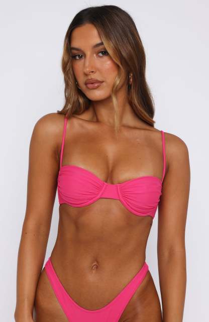 Soak up the sun in our Destino Bikini Top Watermelon Daiquiri! Features thin adjustable shoulder straps, bust underwire, no padding, side ruching detailing, contrast colour-way and back clasp closure. Pair with any of the matching Bikini Bottoms in Watermelon Daiquiri for a look we can't get enough of!