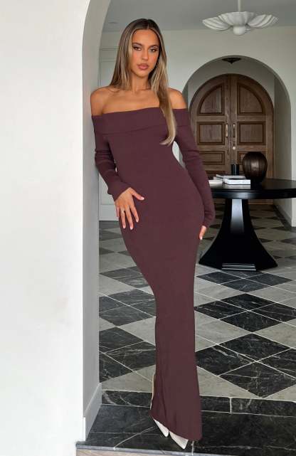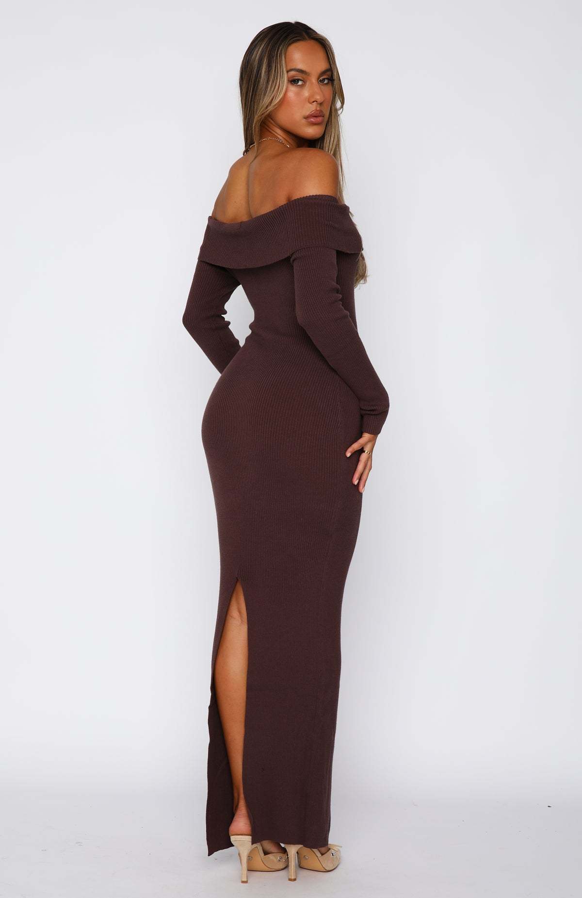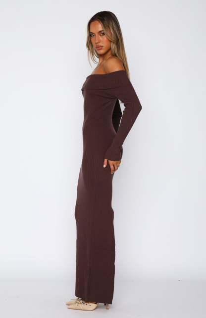 Don't Call Me Anymore Long Sleeve Maxi Dress Chocolate