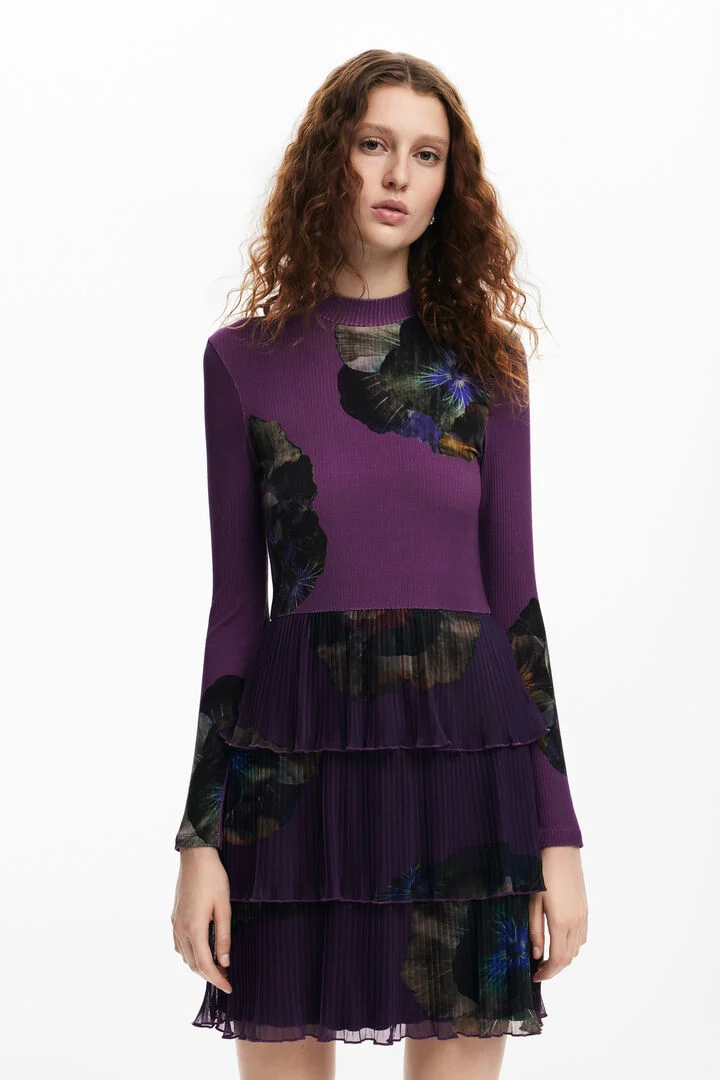 Mini dress with lily flower print and ruffled skirt designed by M. Christian Lacroix