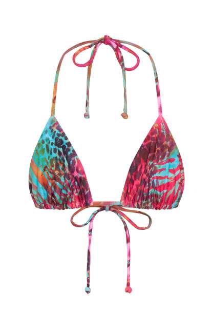Turn up the summer heat in the Golden Hour Bikini Top in Hot Tropic. This sleek triangle top features a halter-style neckline with thin elasticated straps, adjustable back strap, and removable padding for tailored comfort. Pair it effortlessly with our matching Hot Tropic bottoms for a perfectly on‑trend poolside look.
