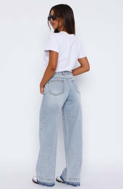 I Don't Need You Mid Rise Wide Leg Jeans Light Blue Wash