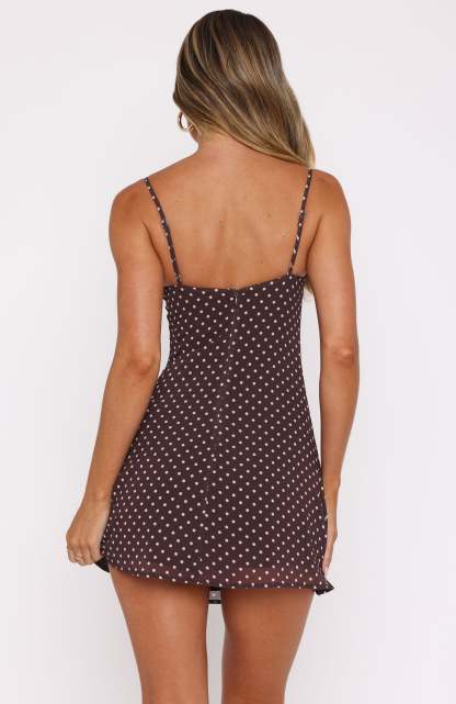 It's all about summer lovin' in the In The Back Of My Mind Mini Dress Chocolate Polka Dot! Featuring thin, adjustable straps, bust underwire, invisible back zipper and clasp closure, mini length and a gorgeous lined printed fabric. Style with kitten heels and layered jewellery.