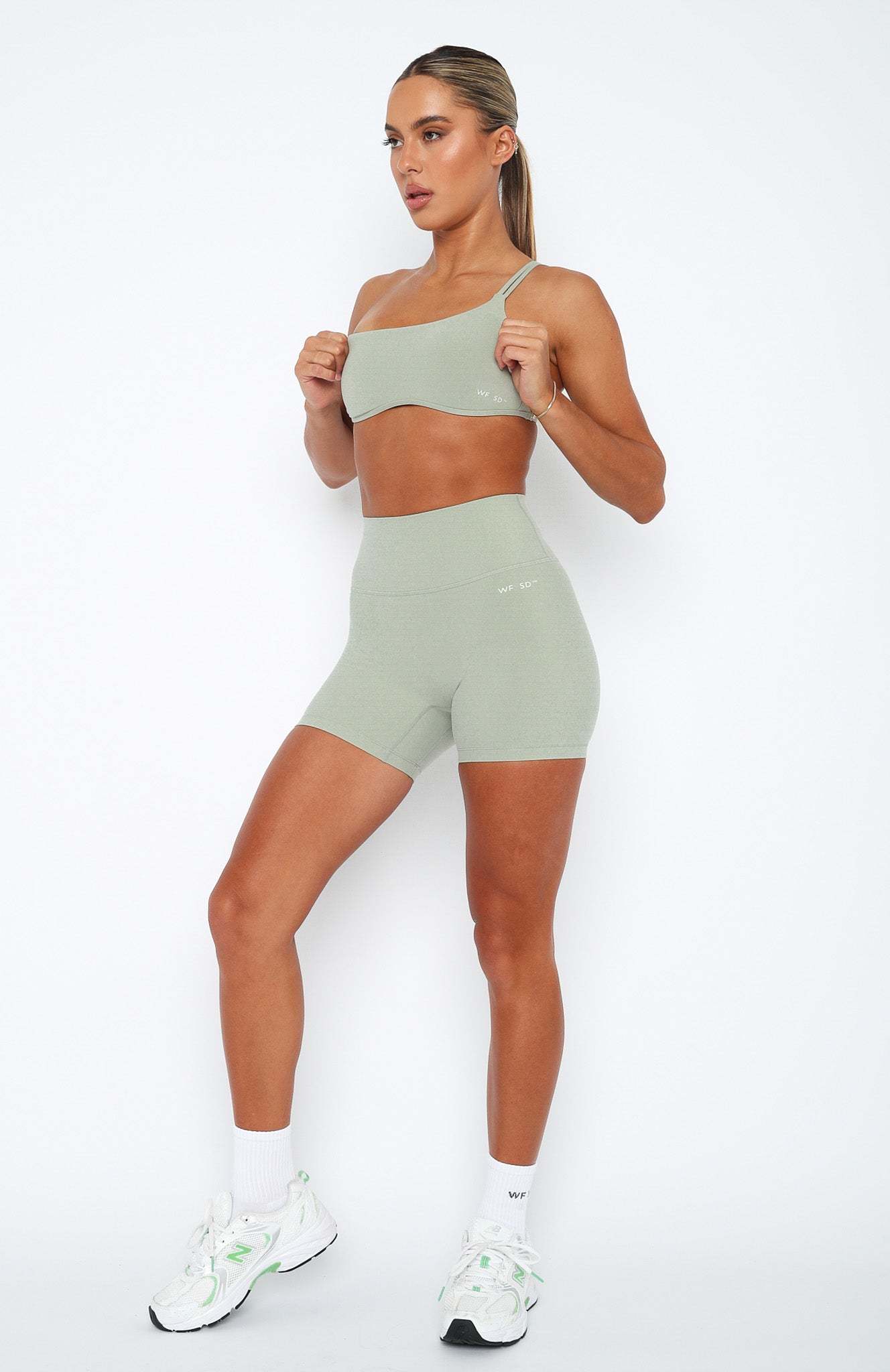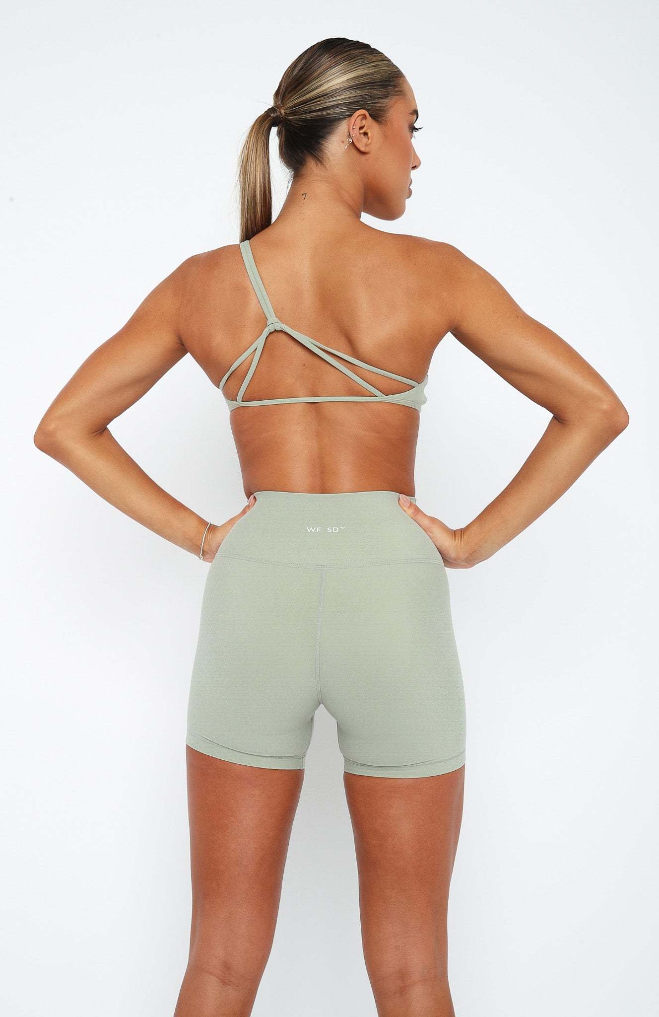 The Leighton Sports Bra in Seamist is a workout staple. Featuring straight neckline, one-shoulder design, fitted design, criss-cross back design, lined, removable padding and SD X WFA printed logo front side. We love this paired with a pair of SD X WFA Bike Shorts or Leggings for the ultimate workout combo.