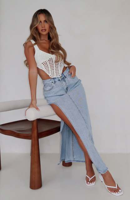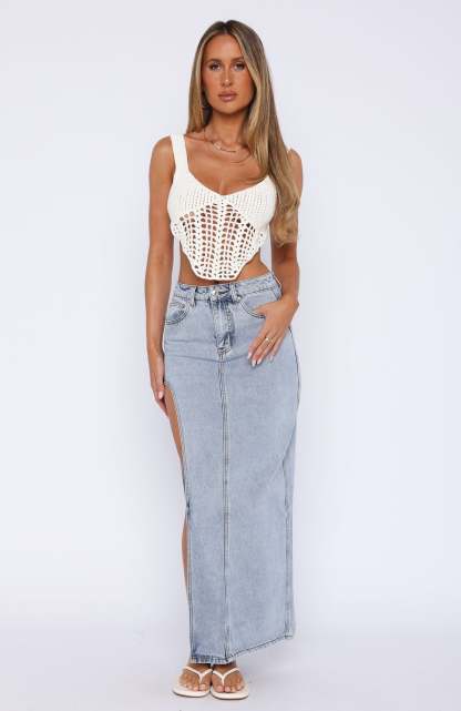 Let's Take A Trip Denim Maxi Skirt Light Blue
