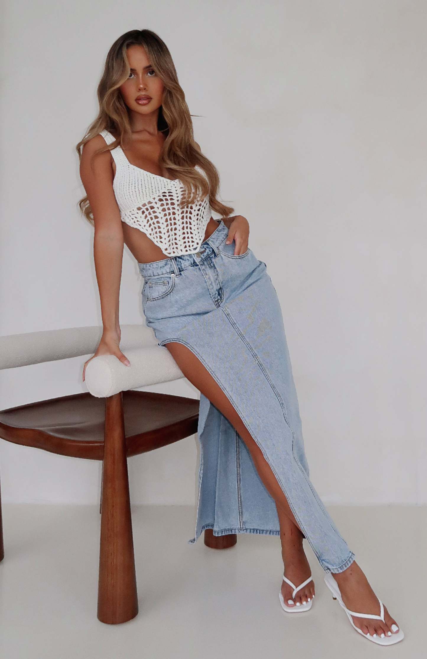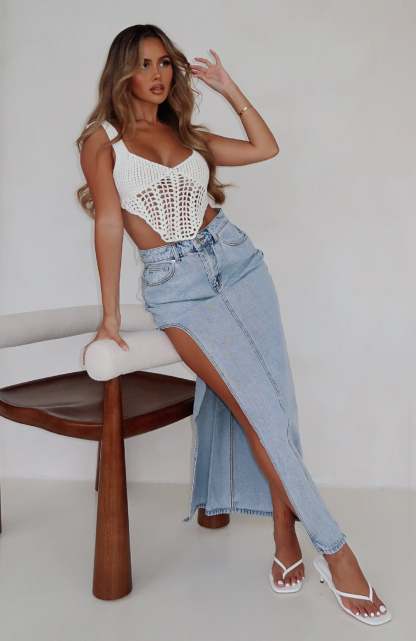 Dress it up or down! The Let's Take A Trip Denim Maxi Skirt Light Blue is the newest staple your wardrobe is calling out for. This maxi skirt is high-waisted and features button and zipper closure, side split and front and back pocket design. We love this paired with knee-high boots and gold accessories for an on-trend fit!