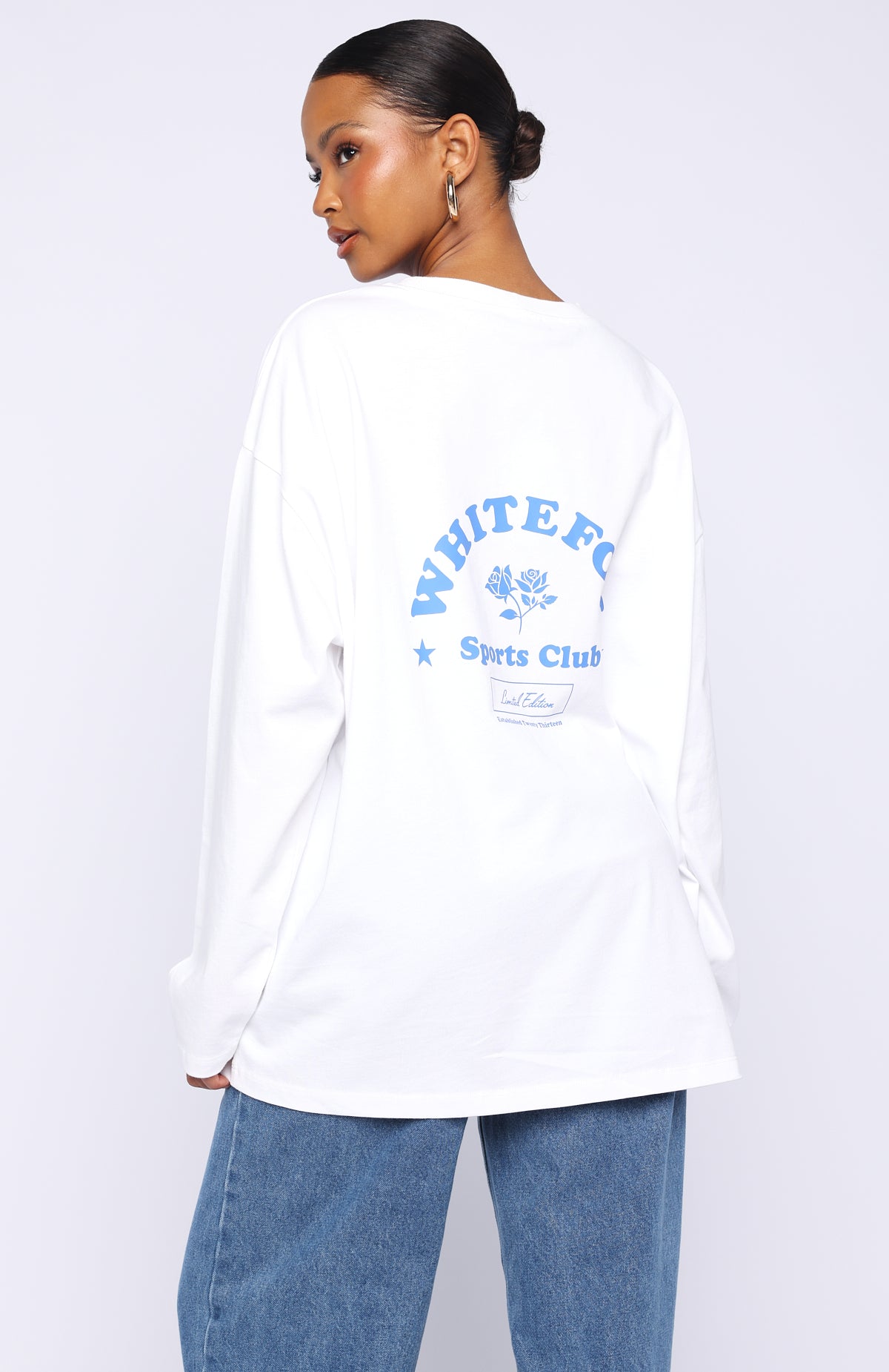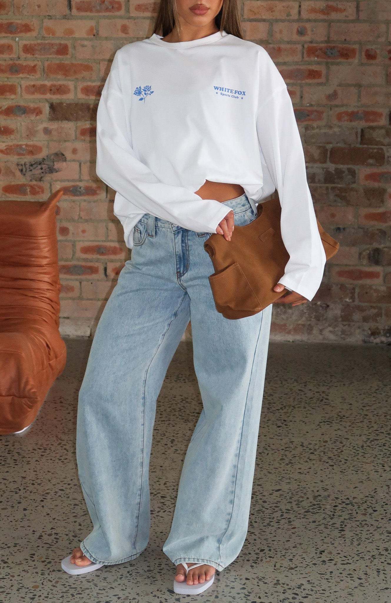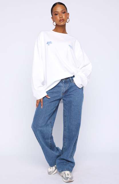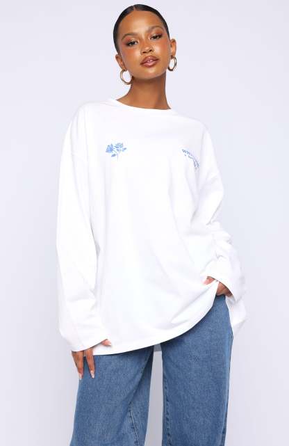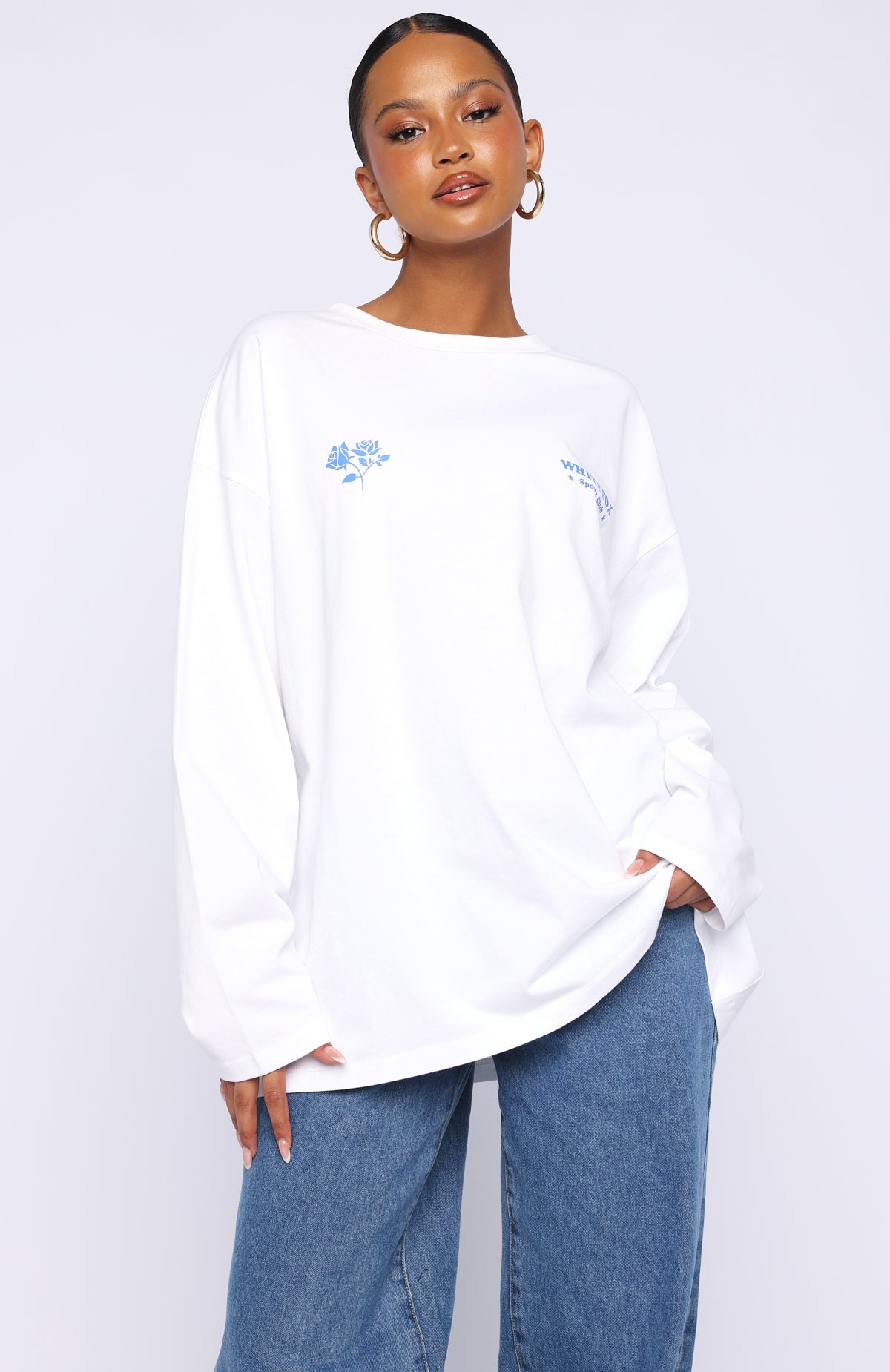 Sporty meets laid-back energy in the Little Bit Loud Oversized Long Sleeve Tee in White. Designed with a classic crew neckline, dropped shoulders, and relaxed long sleeves, it features printed White Fox text at the side front and centre back, paired with a rose graphic. Style it with denim jeans and sneakers for an effortlessly cool, everyday fit.