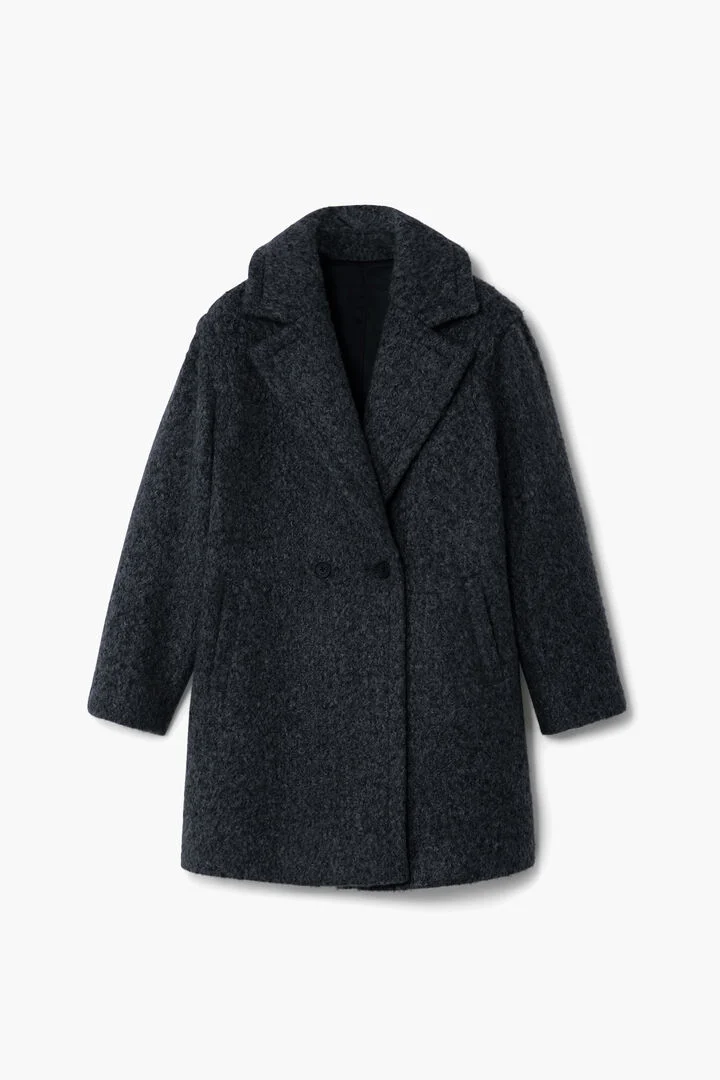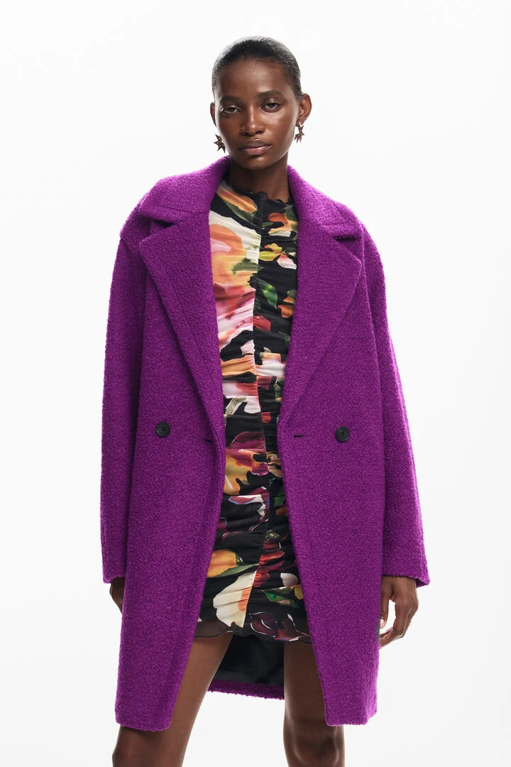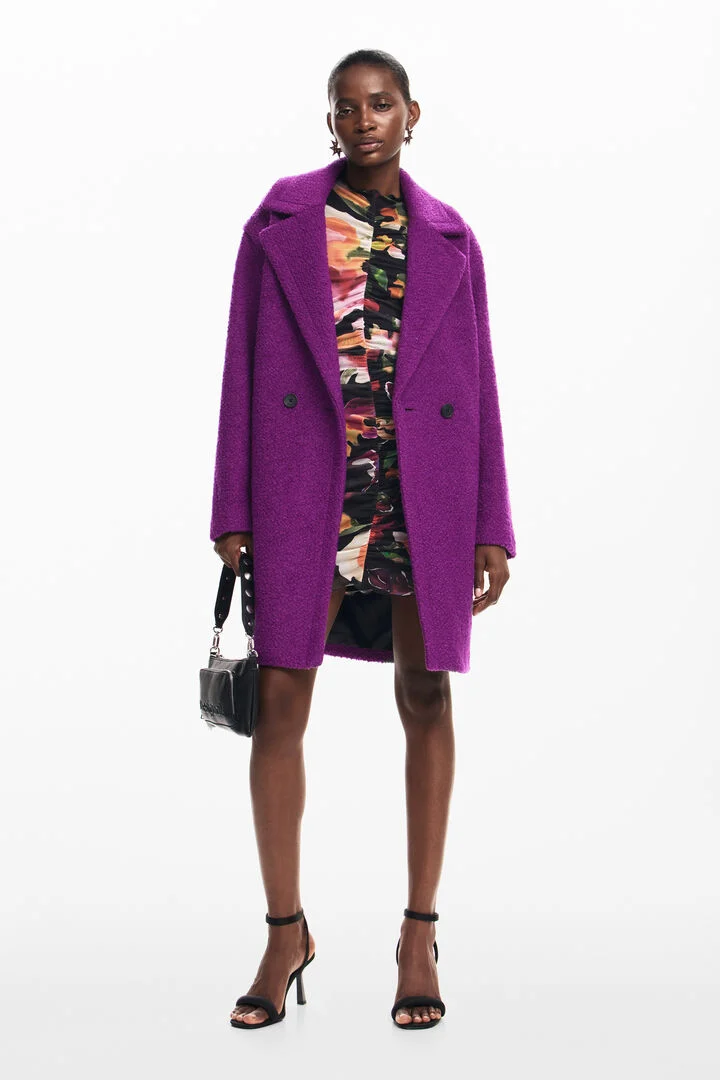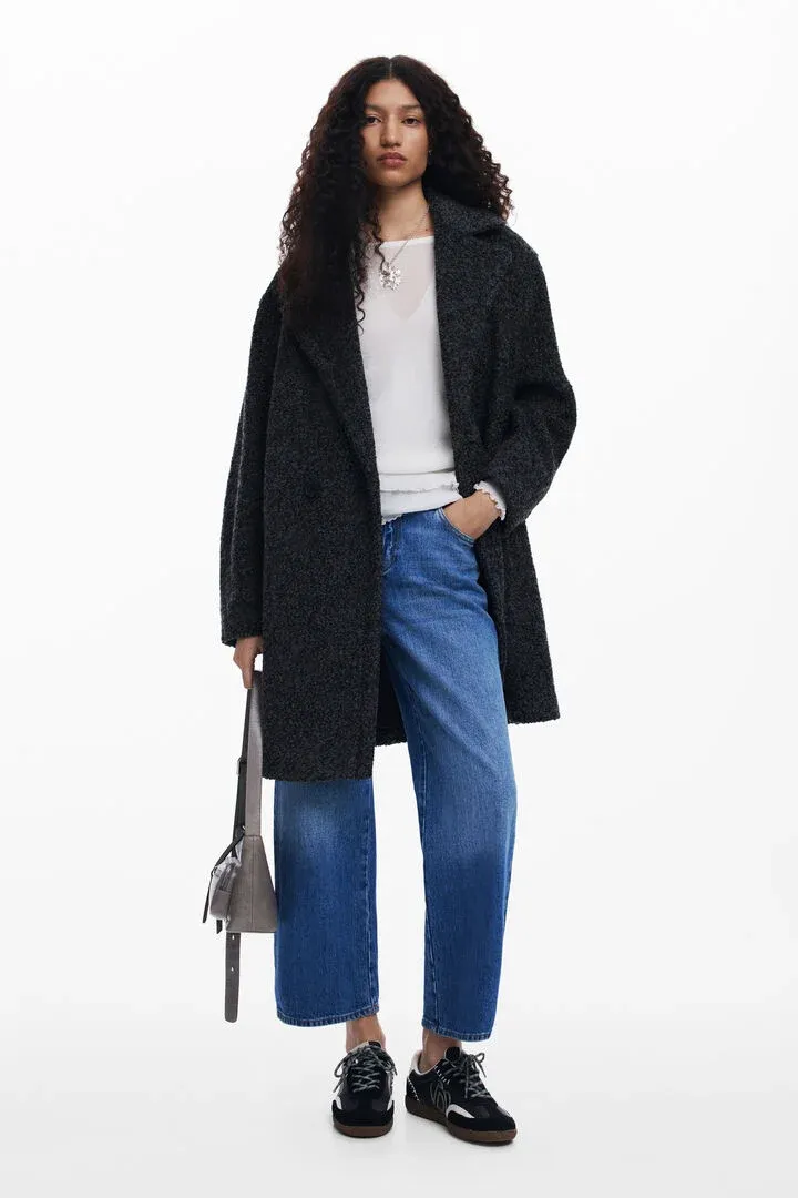 Long coat with button closure and V-neck made of wool