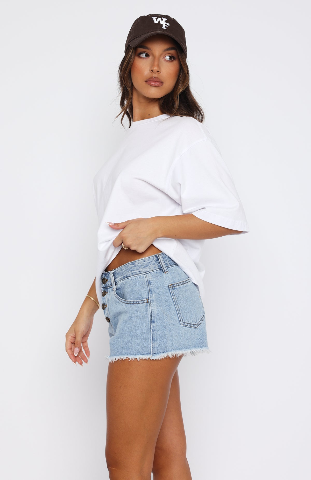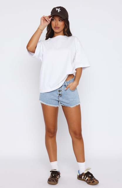 Add these must-have shorts to your summer-worthy wardrobe. The Lush Life Denim Shorts Mid Blue features a mid waisted fit with button closure, 5 pocket design, frayed/distressed hem and belt loops. Complete the look with a cute crop top and sneakers and you're ready for a day in the sun.