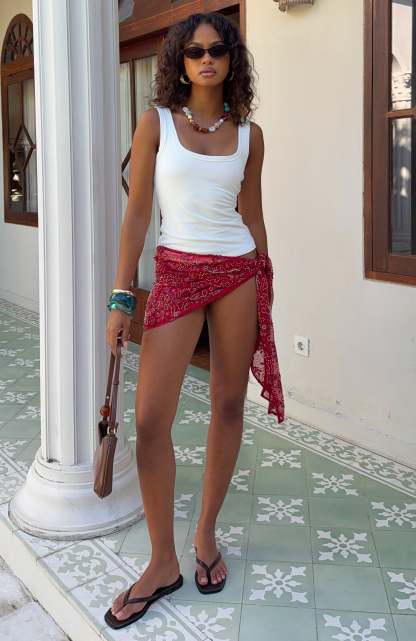 Beach‑ready vibes in the Magic Romance Beaded Sarong in Scarlett Flame. Featuring a long length with intricate sequin and bead detailing woven into a floral design, this sarong adds shimmer and movement to your look. Style it with a matching bikini for effortless poolside or beach club chic.