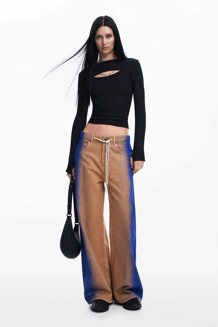 Jeans with gradient and contrasting drawstring detail designed by Alphonse Maitrepierre