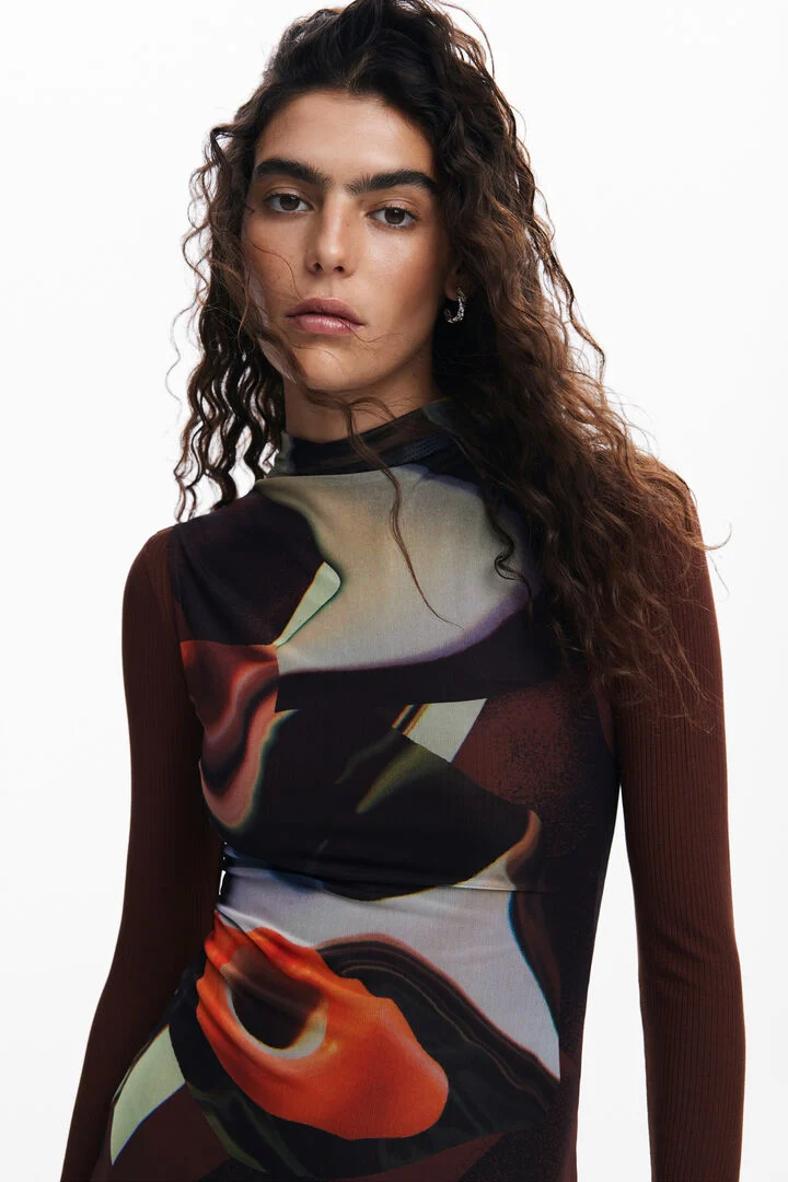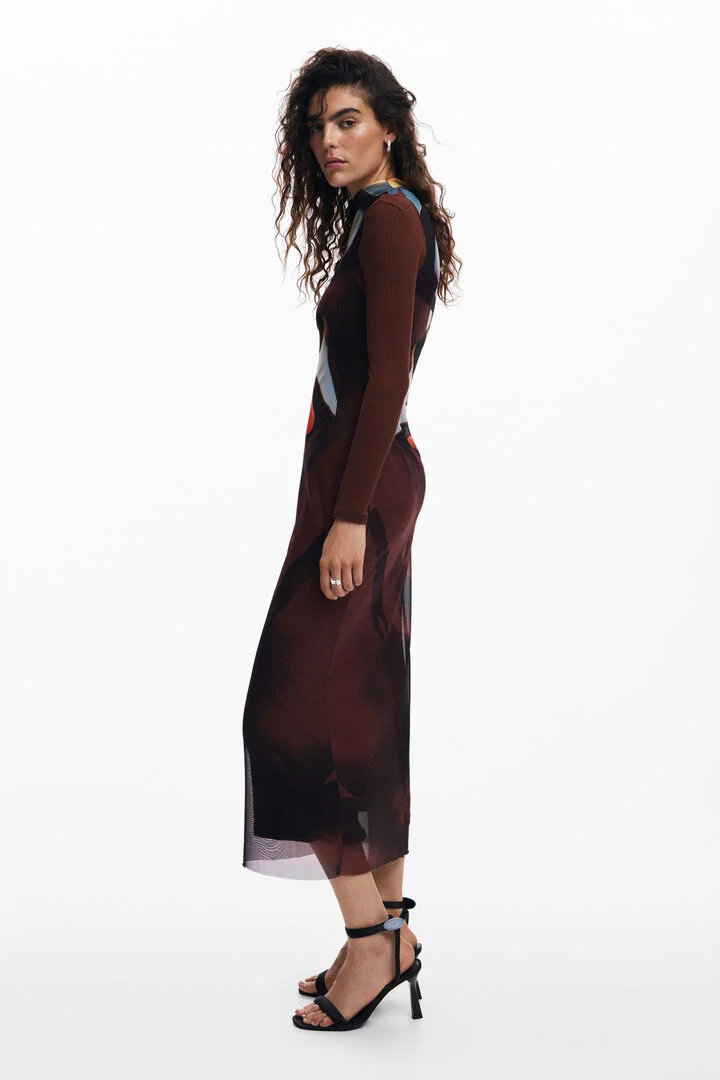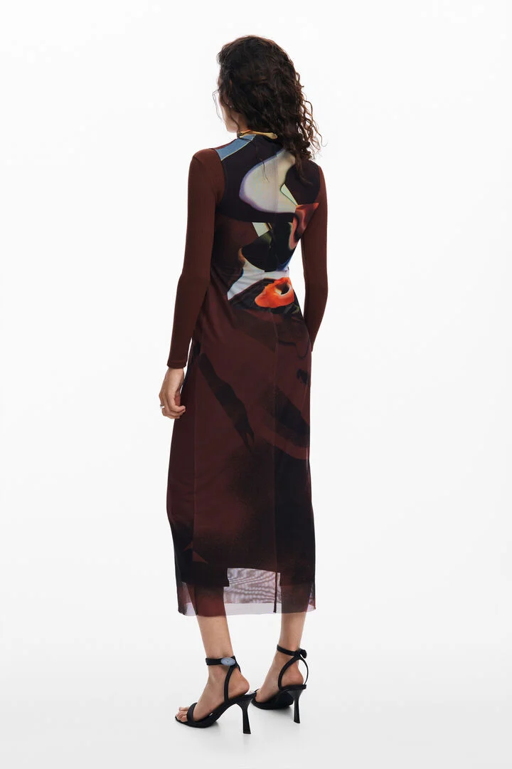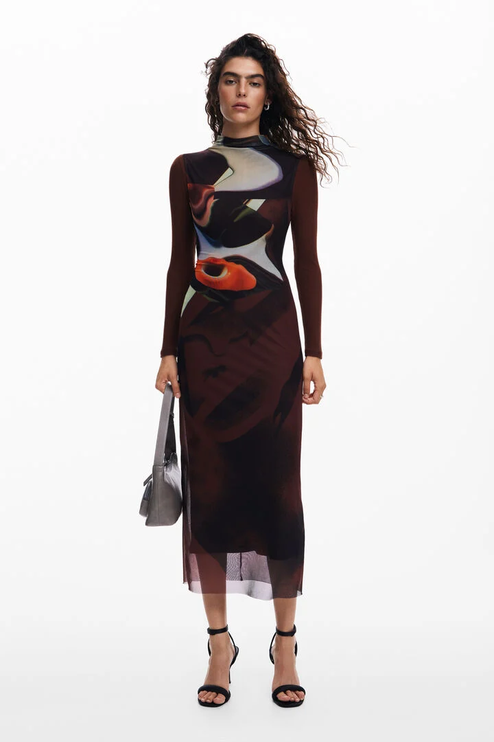Multi-position midi dress with long sleeves and Arty print