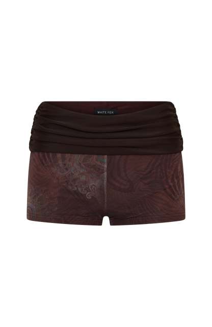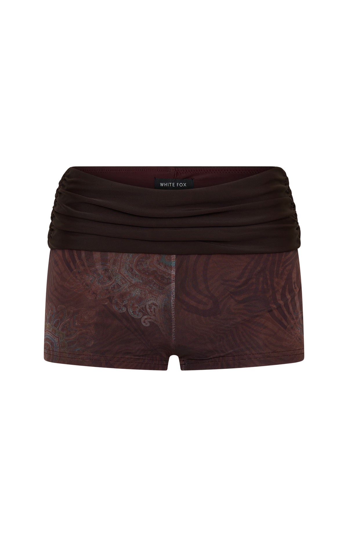 Desert angel energy. The Not Today Shorts Sandstone Disco feature a thin elastic waistband with folded fabrication and flattering ruching at the hips. Designed in a booty-short length with high-stretch fabric and a fully lined finish. Style with the matching top, cowboy boots, and statement sunnies for the ultimate festival-ready look.