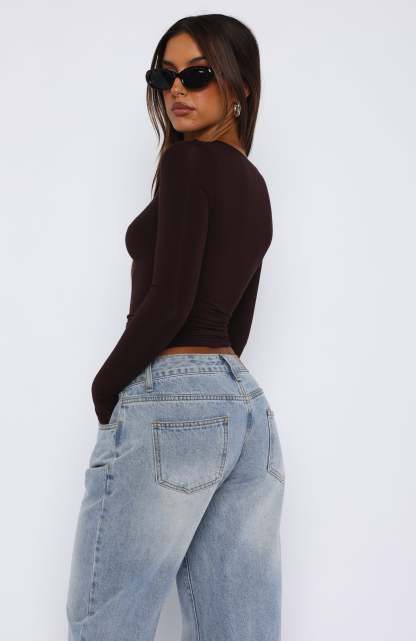 Only For Tonight Long Sleeve Top Dark Chocolate