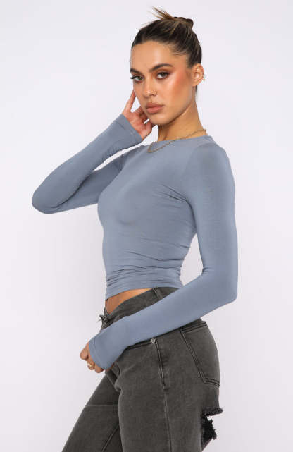 Only For Tonight Long Sleeve Top Steel