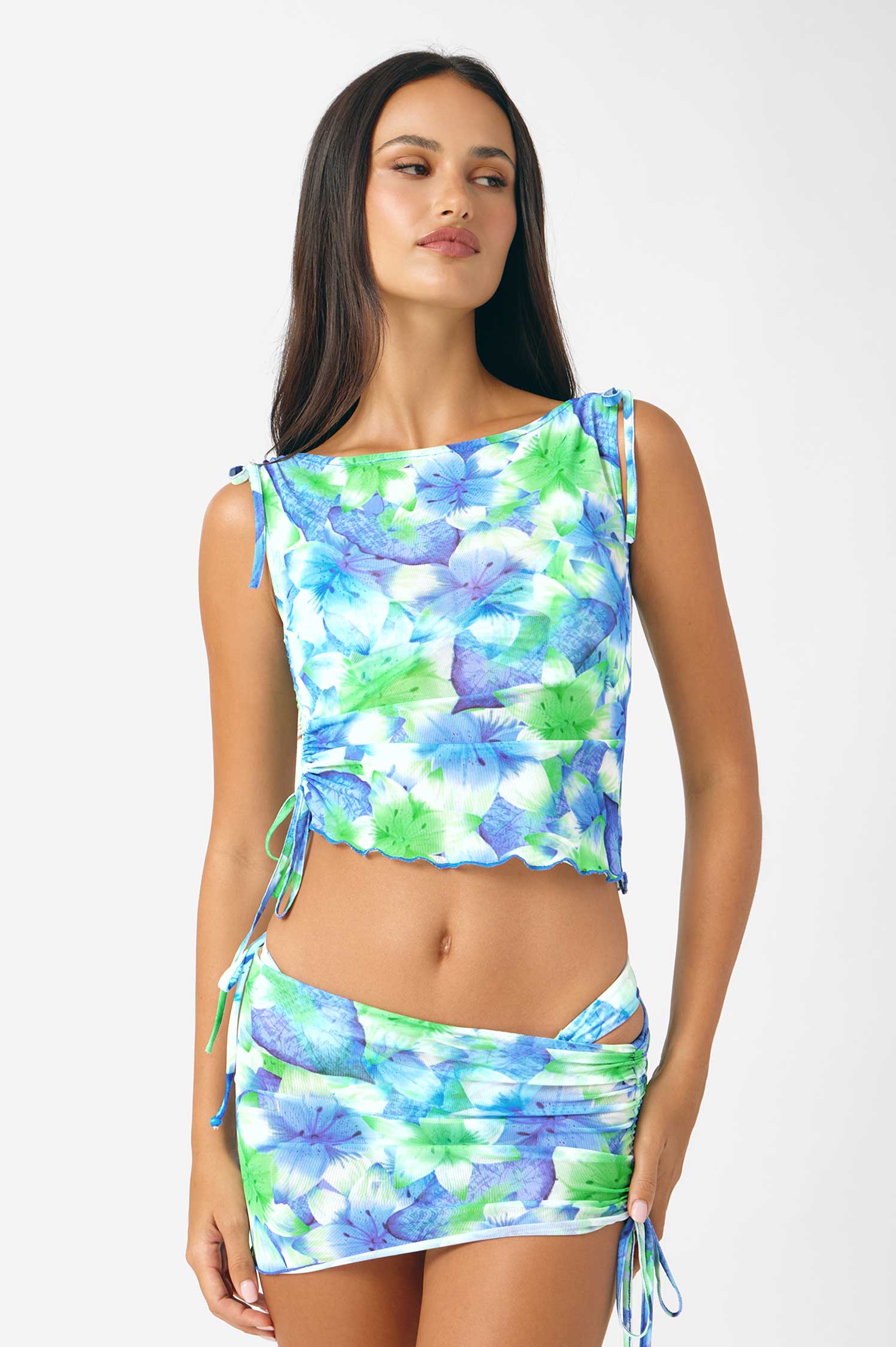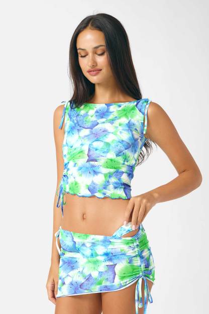 Delphine Scrunched Mesh Tank Top / Curacao