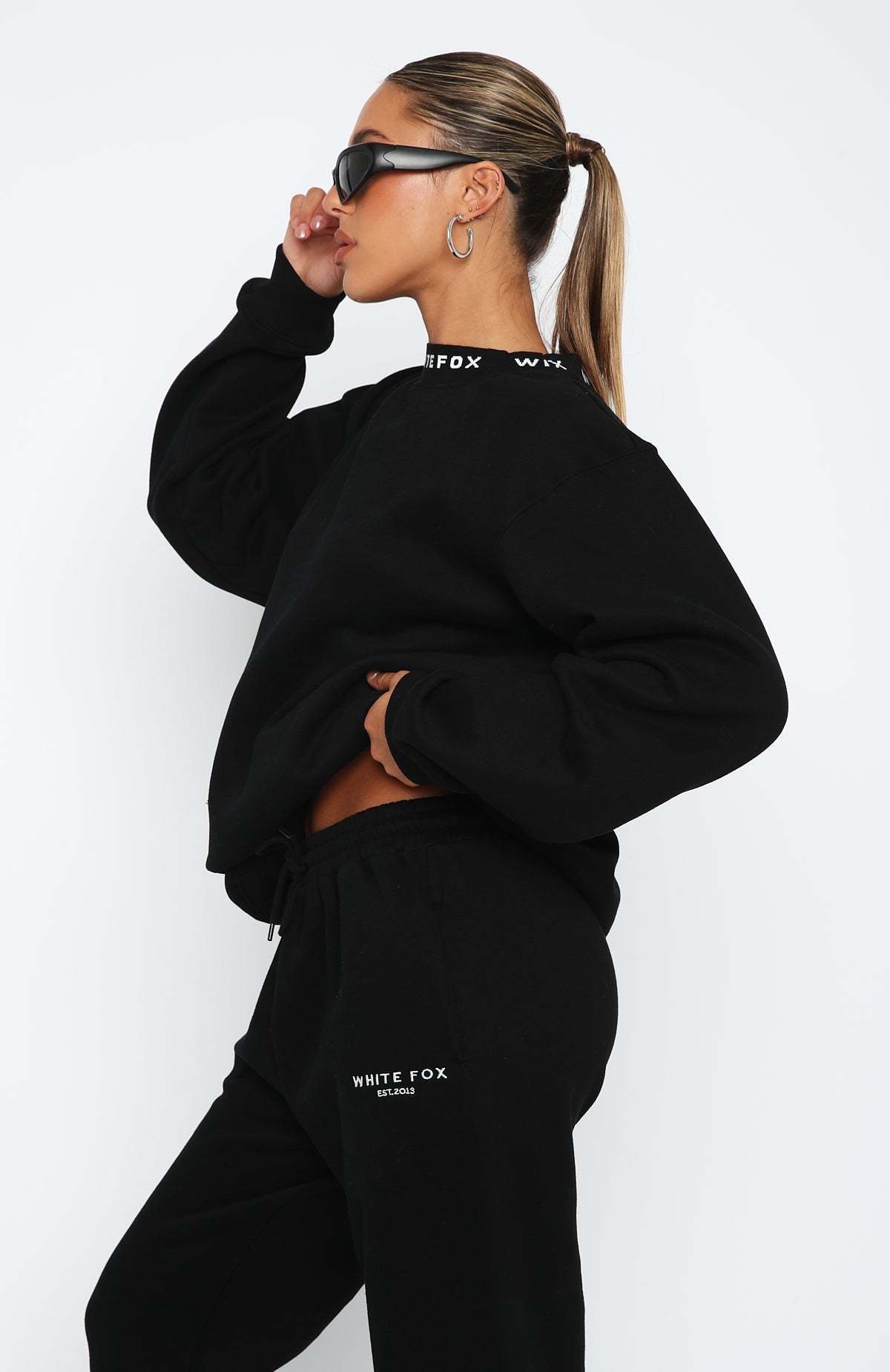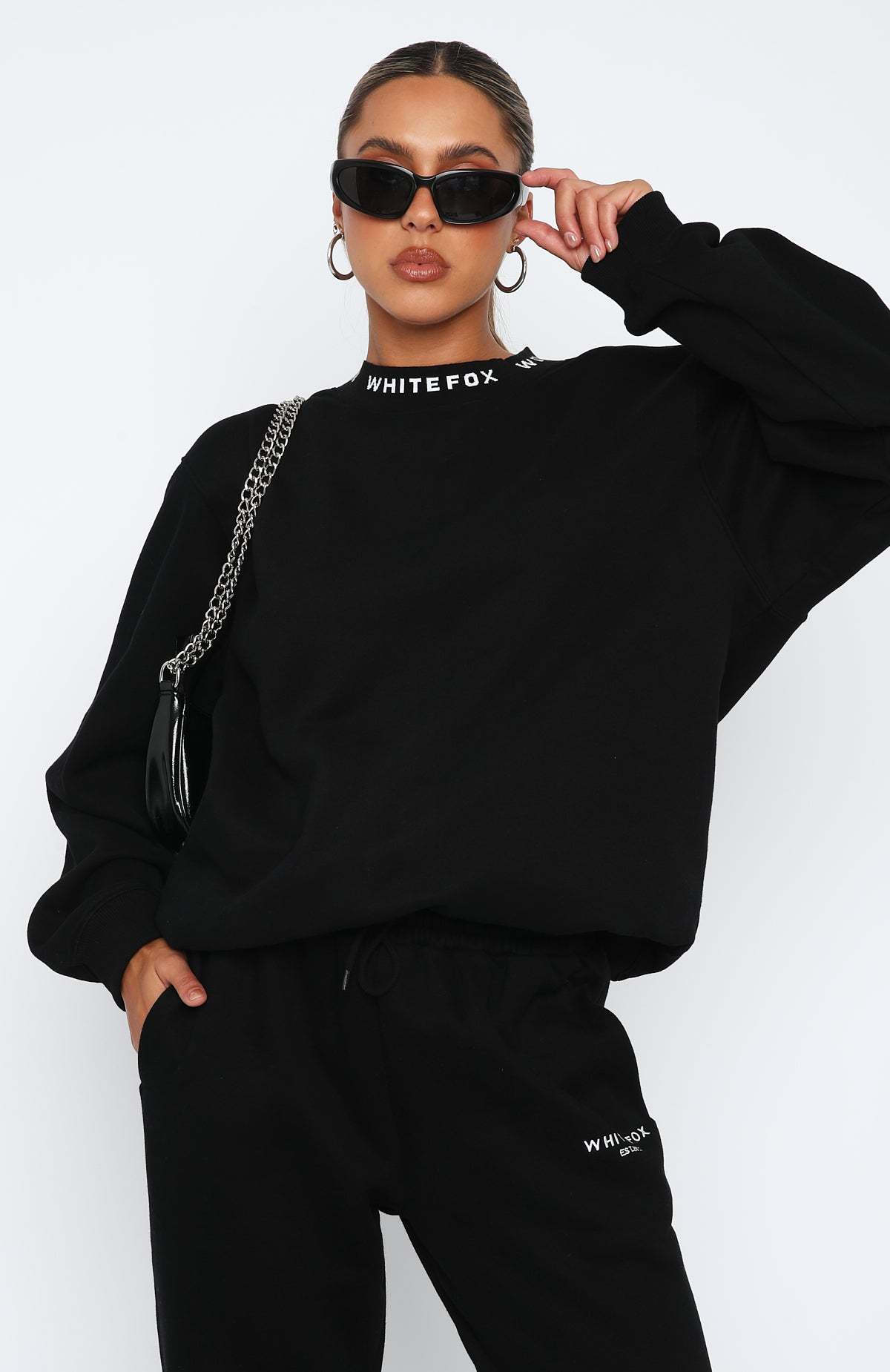 Stay warm in style with the Put It On Repeat Oversized Sweater in Black. This oversized sweatshirt has a high scooped neckline, ribbed neckline with printed logo design, cuffs and hem and super soft fleece lining for extra comfort. Pair with the matching Put It On Repeat Sweatpants and sneakers for the perfect stay at home look!