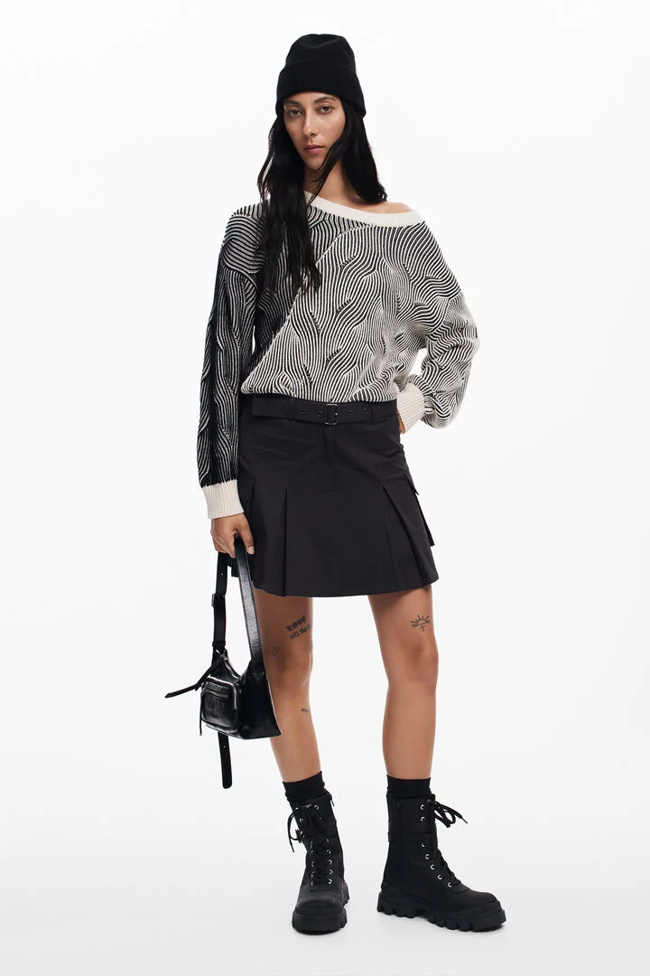 Long-sleeved knit sweater with a round neck and bicolor embossed print