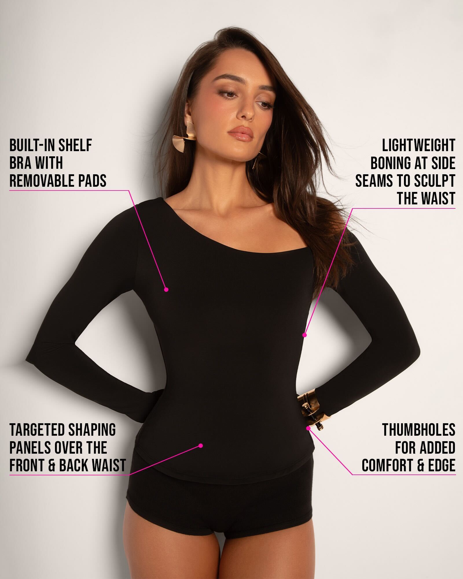 - Built-in shapewear that smooths, sculpts, and supports - no extra layers required.