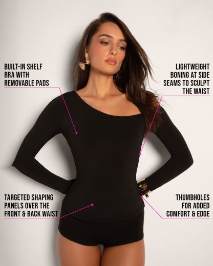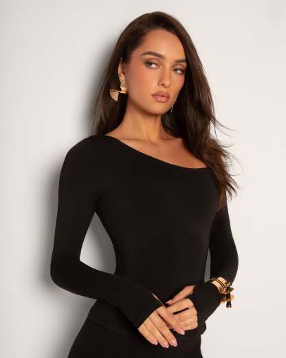 Sculpty One Shoulder Long Sleeve Top - Black
