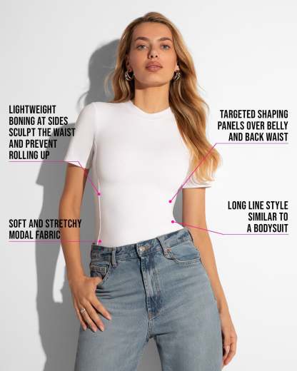 - Lightweight boning at sides to sculpt the waist and prevent rolling up.