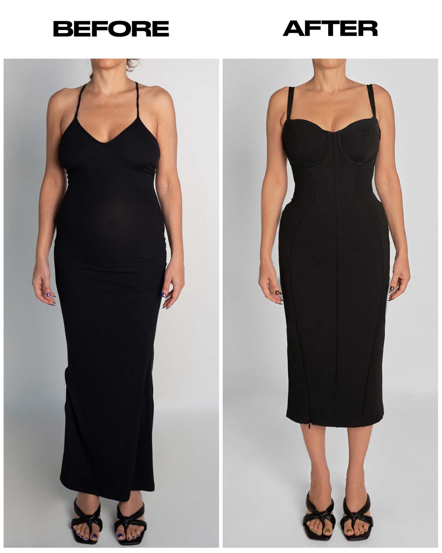 - Built-in shapewear that smooths, sculpts, and supports - no extra layers required.