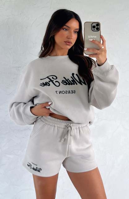 The Season 7 Oversized Sweater Overcast has a high scooped neckline, ribbed neckline, cuffs and hem, puff print logo centre front and super soft fleece lining for extra comfort. Complete the tracksuit set with the Season 7 Sweatpants or Lounge Shorts.