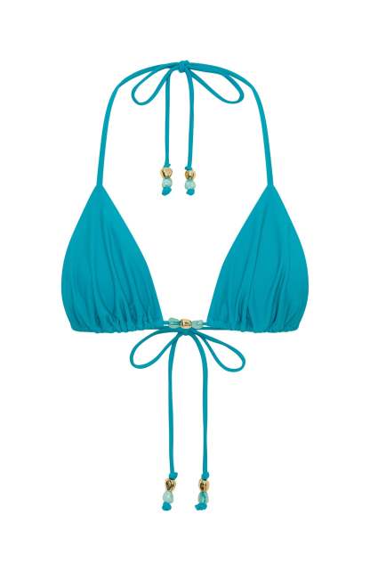 Salt-kissed skin in the Sephira Bikini Top Teal Crush. Featuring thin halter straps and a classic triangle silhouette with adjustable back straps for a personalised fit. Finished with beading at under-bust straps and removable padding. Style it with the matching bikini bottoms in Teal Crush and sandals for an effortlessly chic beach‑to‑bar look that feels as good as it looks.
