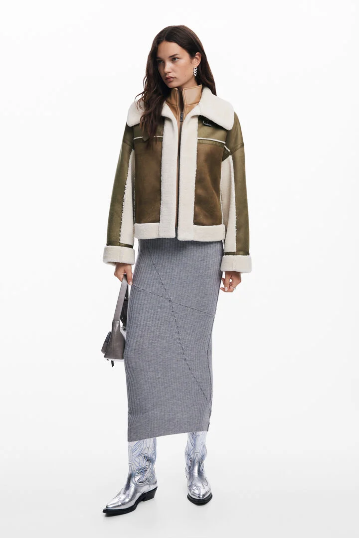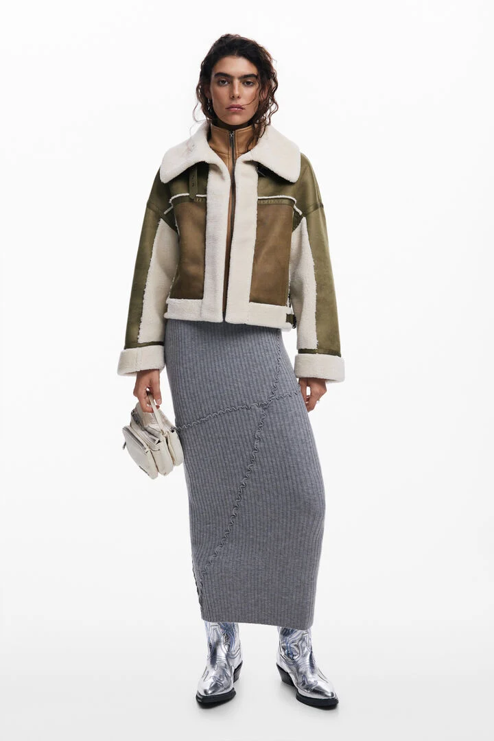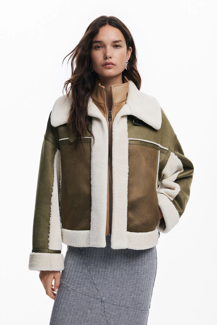 Patchwork biker-style jacket with shearling lining