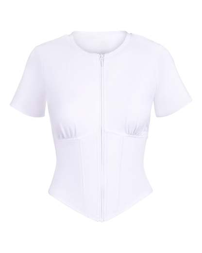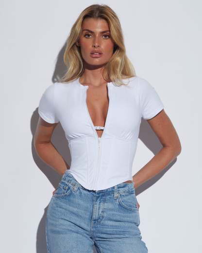 Short Sleeve Corsety Top - White