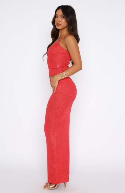 Shine all night long in the Star Shining Sequin Maxi Skirt in Red. This knitted maxi skirt features a high, elasticated waistband and sequin embellishment. Complete the look with the matching Love Galore Sequin Top and perspex heels for a look that will have heads turning!