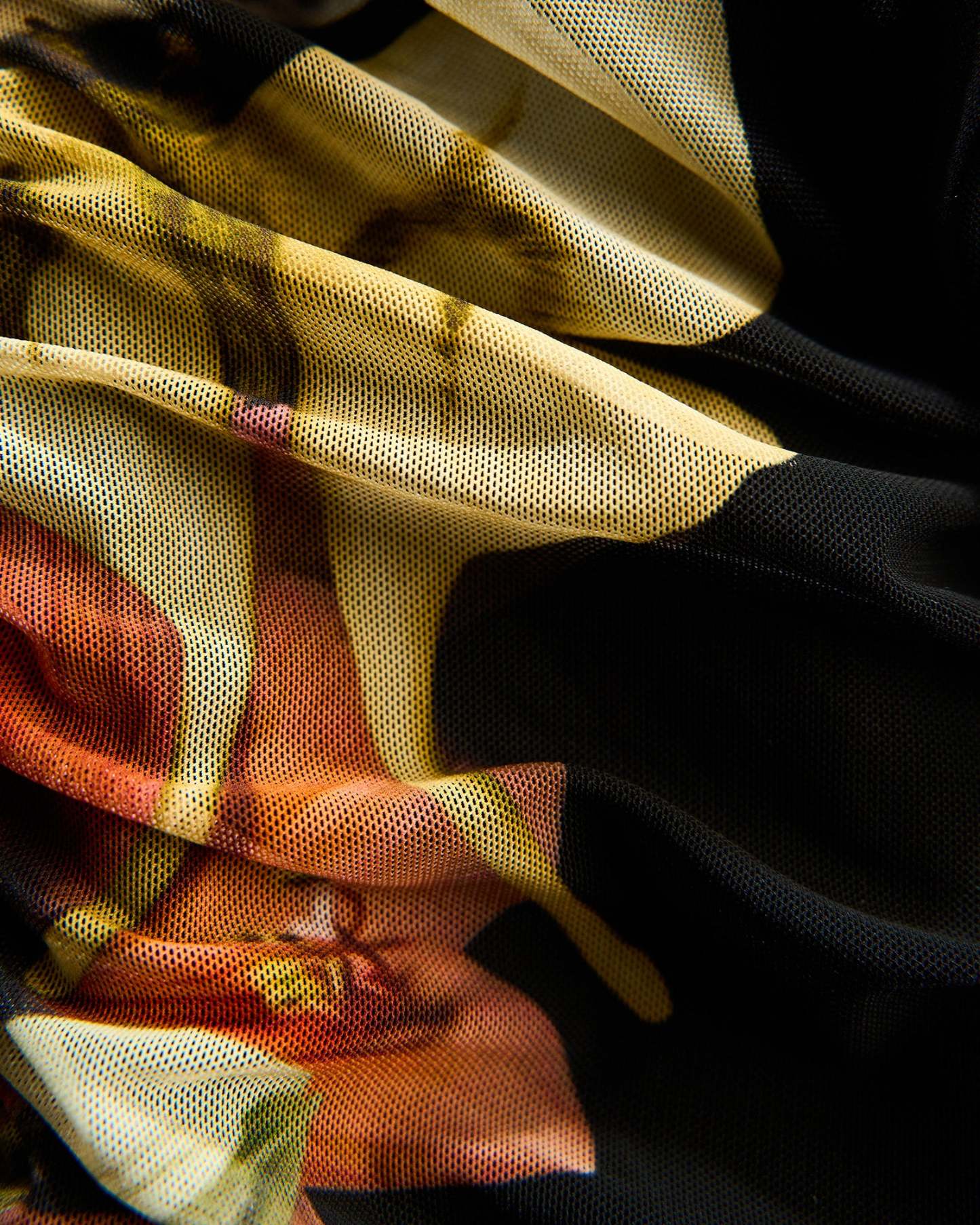 - Lightweight printed mesh layered over luxe ponte for coverage and control.