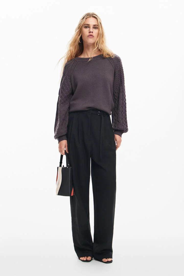 Textured sleeve sweater