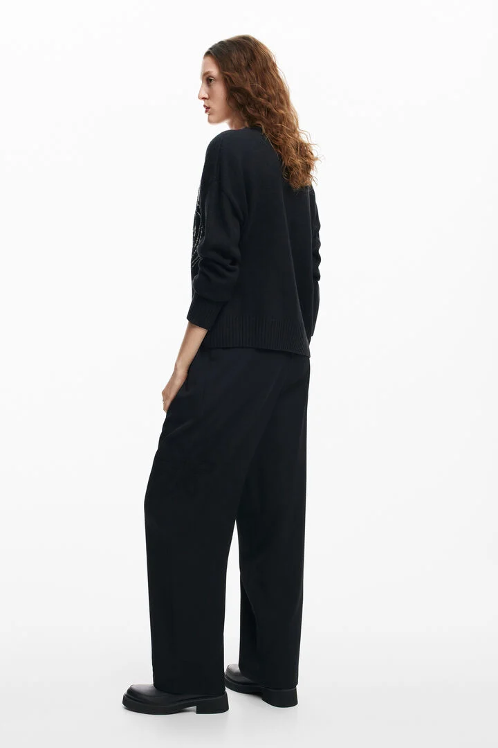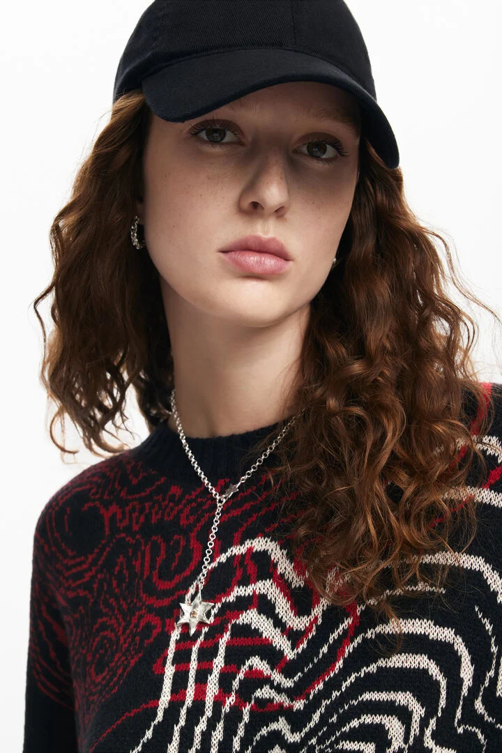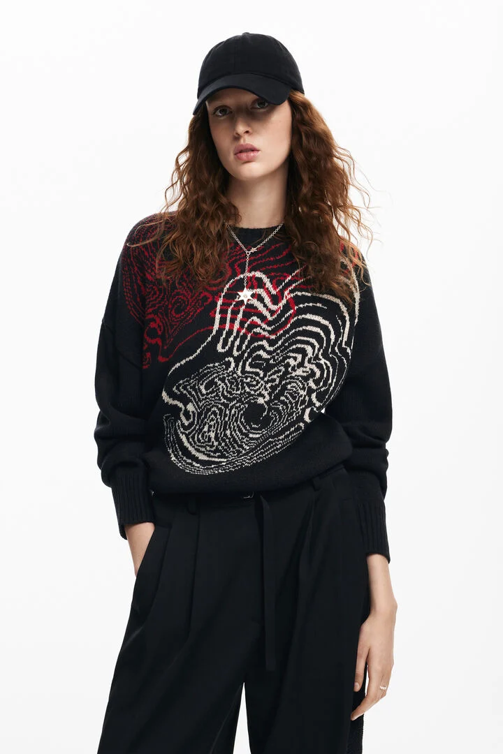 Long-sleeve knit sweater with a round neck and wave print designed by M. Christian Lacroix